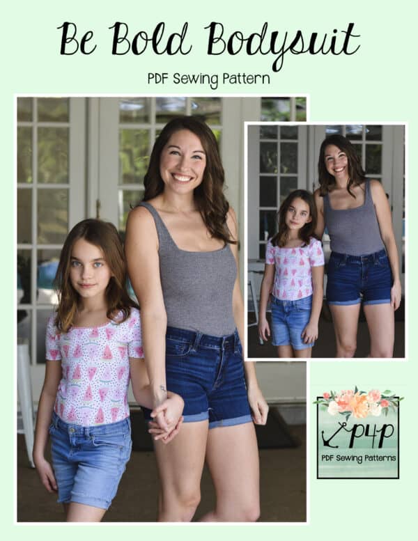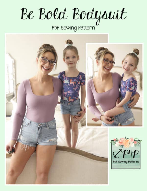 A classic bodysuit is always a staple item in your closet. They pair great under skirts, jeans, slacks, overalls, and more. The perfect tucked in top without worrying about it moving around or coming un-tucked through the day. This pattern is PACKED full of options so you can make bodysuits for all occasions. You can take this pattern from hot summer weather to cold winter with ease. You can even make multiple looks for each season with options to spare. This is a classic tight fit bodysuit with negative ease both side to side and vertically to help keep the bodysuit in place while moving around. You can choose to line the neckline with a shelf bra or finish it off with an adorable picot elastic.