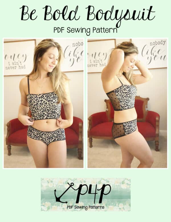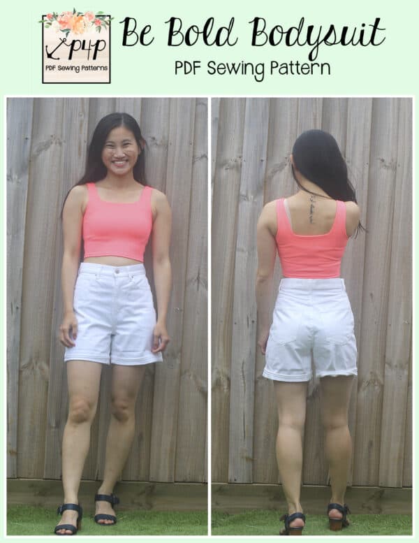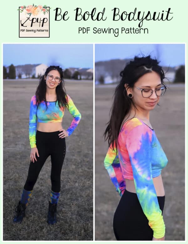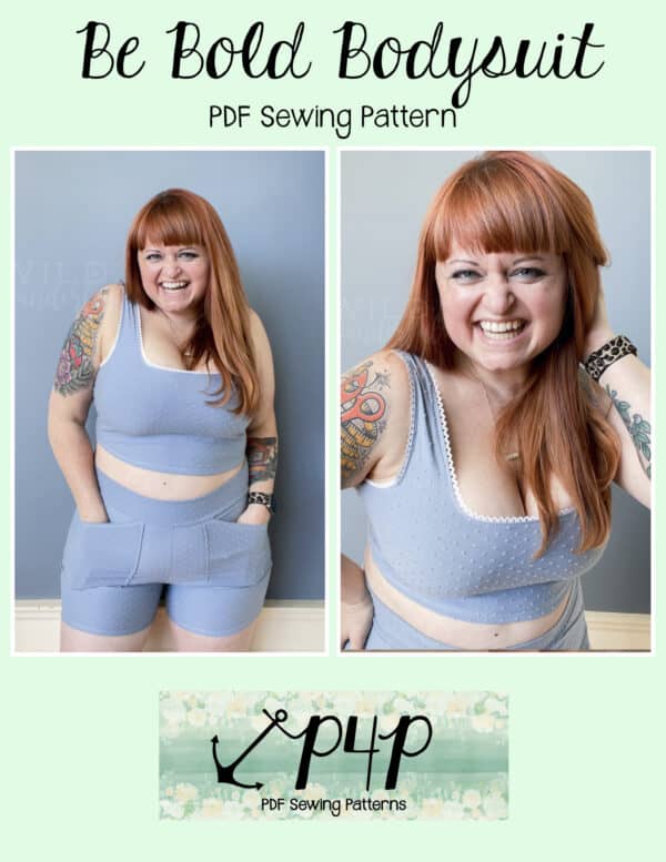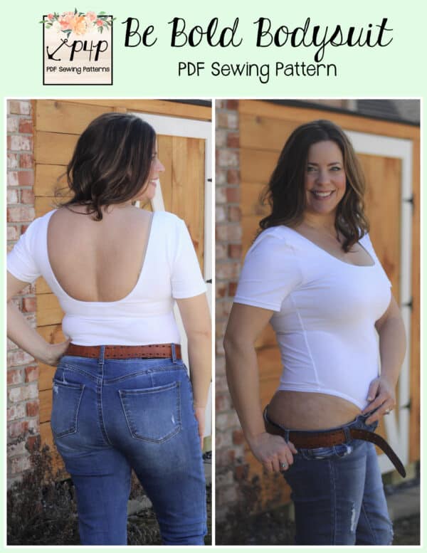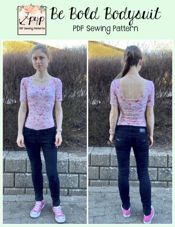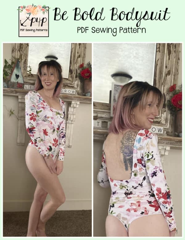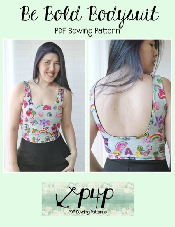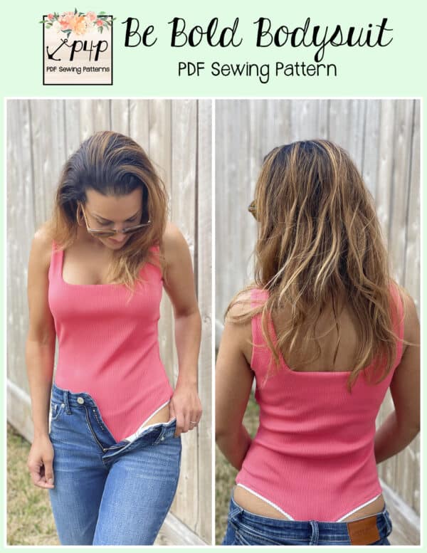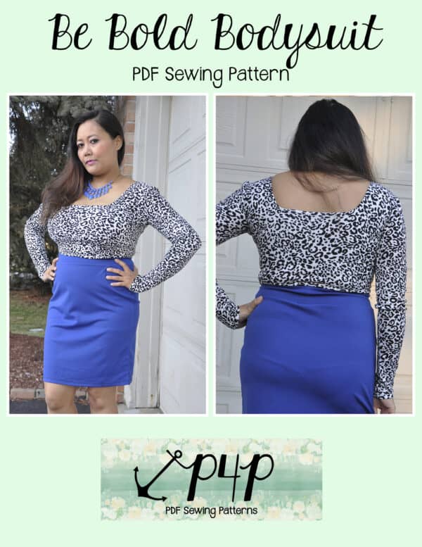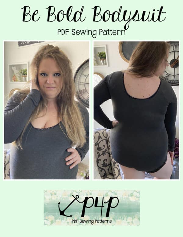 Be Bold Bodysuit will have you feeling fierce in any option. This classic tight fit bodysuit is meant to feel snug and act as the perfect tucked in top without worrying about coming un-tucked. With all the options you’ll be able to make a perfect bodysuit or crop to pair with any bottoms- skirts, pants, overalls, casual or dressy. You can pick from a higher or lower neckline on both the back and front. You can also take this pattern from the hot summer with the multiple tank options to the cooler weather with longer sleeve options. You can finish the neckline with a simple picot elastic or with a lining and shelf bra. Moving down you can have multiple bottom options as well. You can do a thong or brief plus pick if you’d like the seam in the traditional back spot or add snaps with a front seam for ease of snapping. The bodysuit is partially lined so you can use the bodysuit as your undergarment.