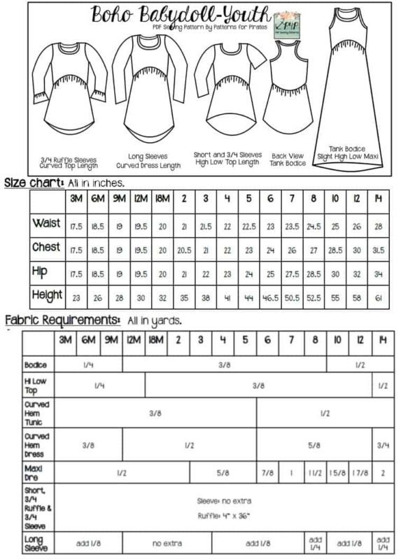 This bundle contains two patterns : Boho Babydoll for Youth, and Adult – Hourglass.