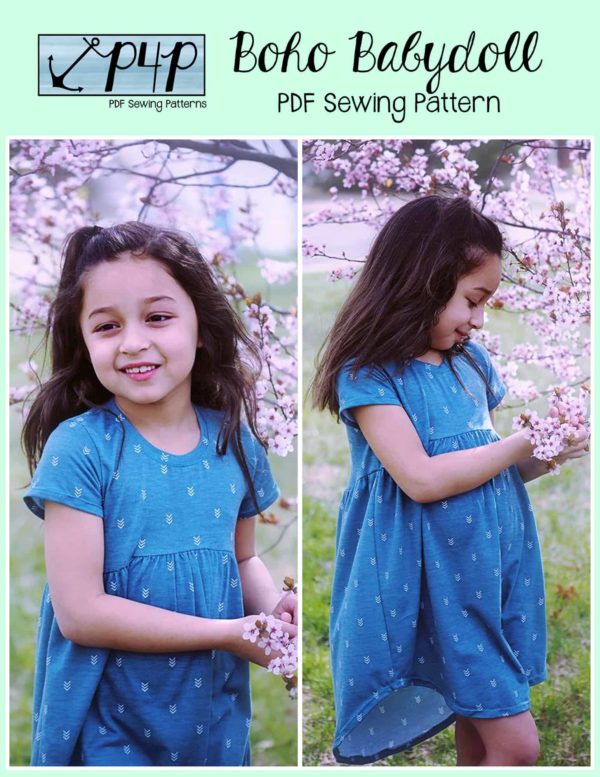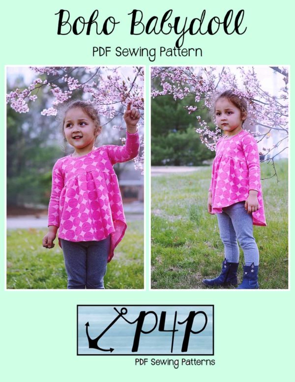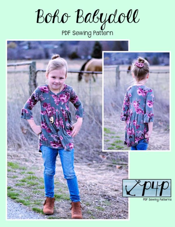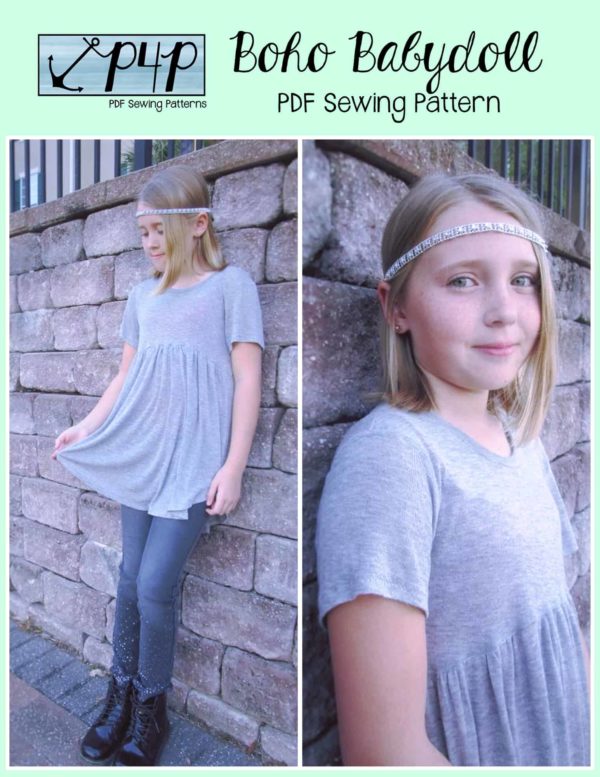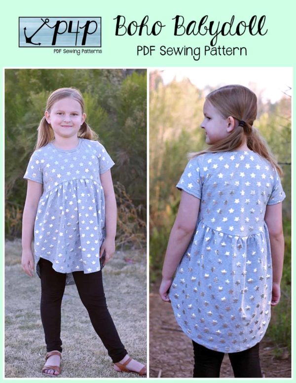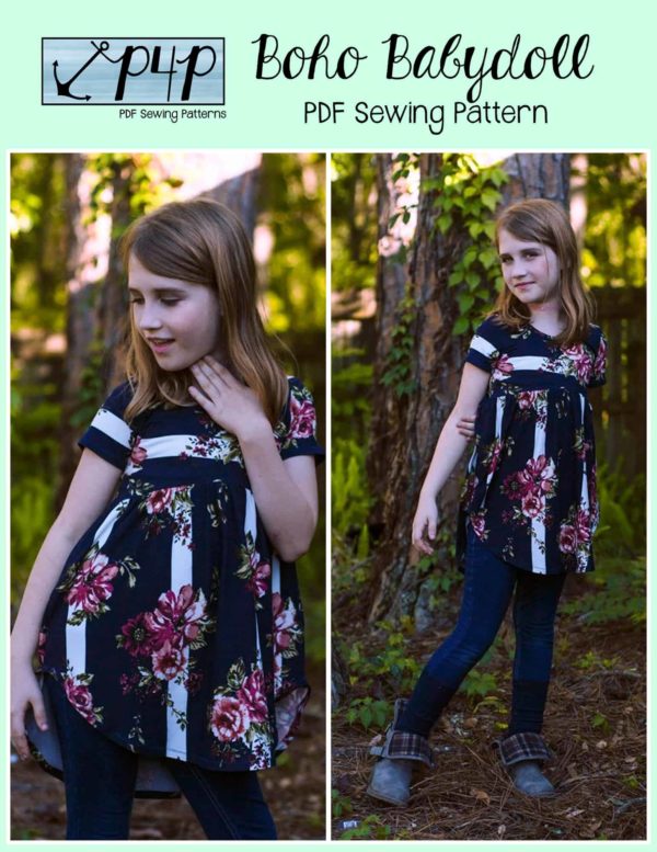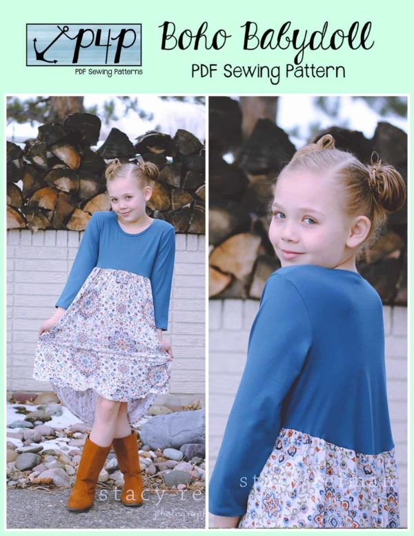 The Boho Babydoll- Youth is such a cute and trendy look for little ones. It’s a quick sew and with all the options you can make them a handful without looking the same! The bodice is empire at front center and curves down to natural waist in the back. The skirt is gathered just enough for great interest, but not so much you can’t use an array of knits (anything from a thin rayon spandex to cotton lycras will work for youth). You can go with tank and dress in a lightweight knit for an adorable summer option or the long sleeve tunic in sweater knits for a cozy winter top!