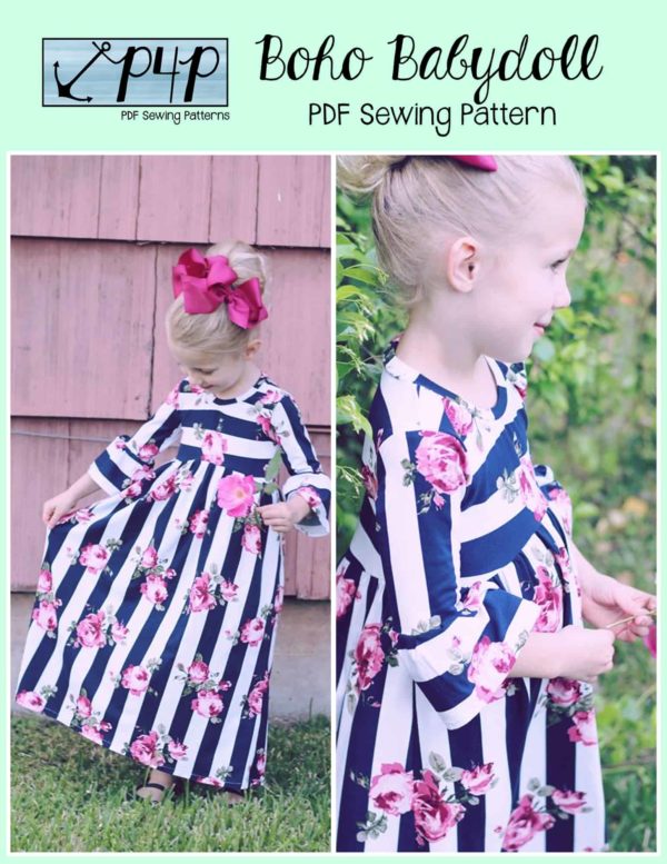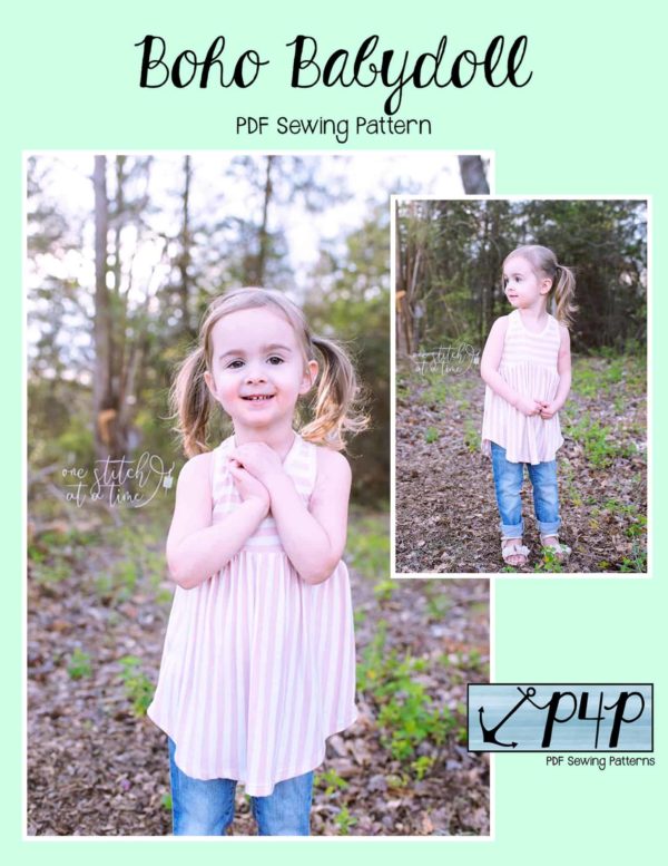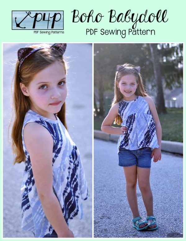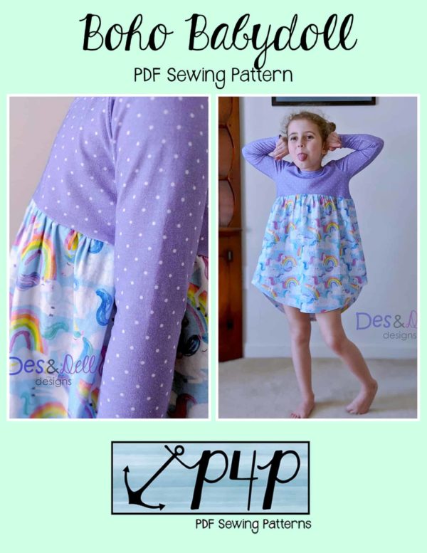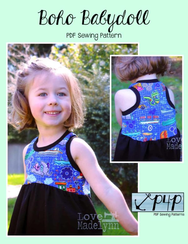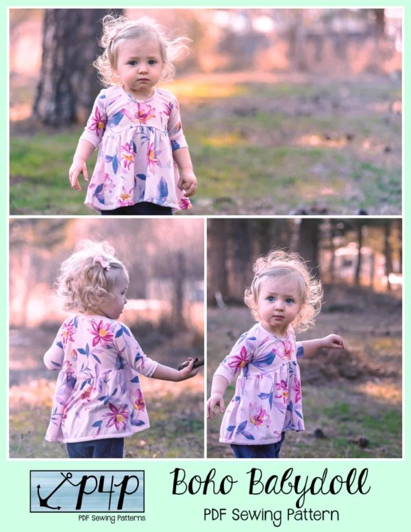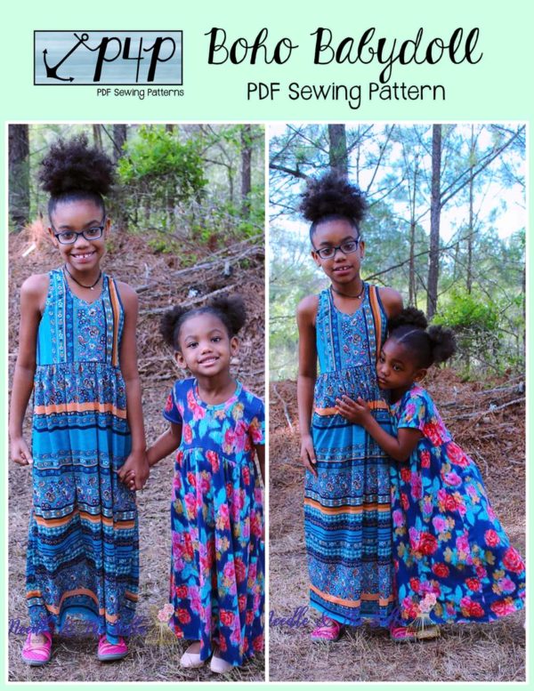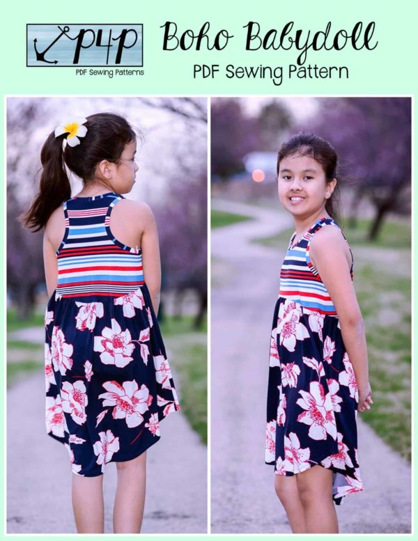 The Boho Babydoll- Youth is such a cute and trendy look for little ones. It’s a quick sew and with all the options you can make them a handful without looking the same! The bodice is empire at front center and curves down to natural waist in the back. The skirt is gathered just enough for great interest, but not so much you can’t use an array of knits (anything from a thin rayon spandex to cotton lycras will work for youth). You can go with tank and dress in a lightweight knit for an adorable summer option or the long sleeve tunic in sweater knits for a cozy winter top!