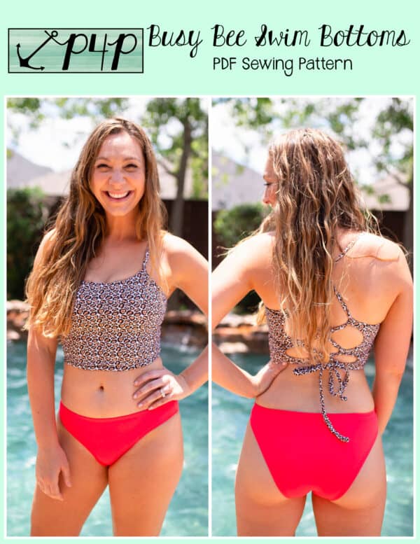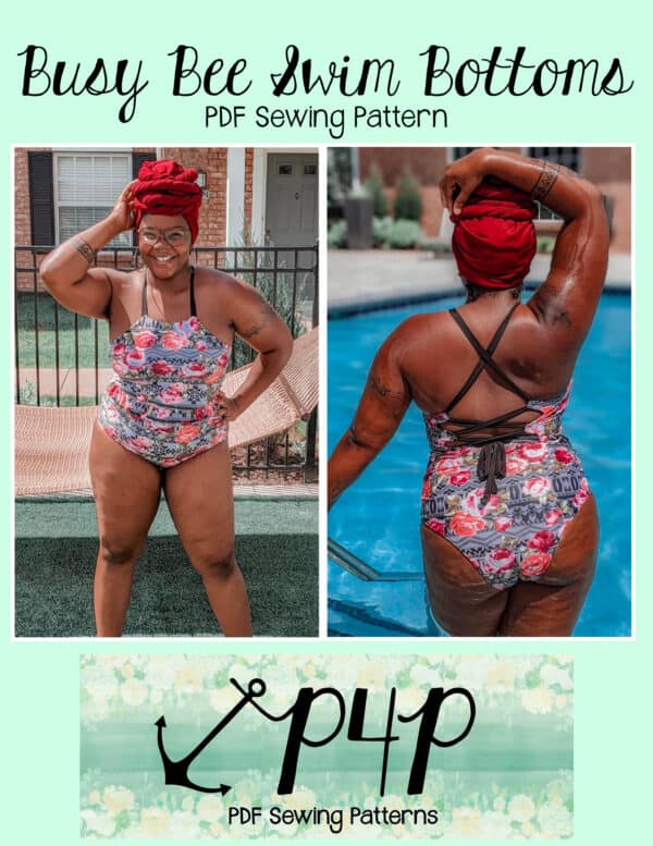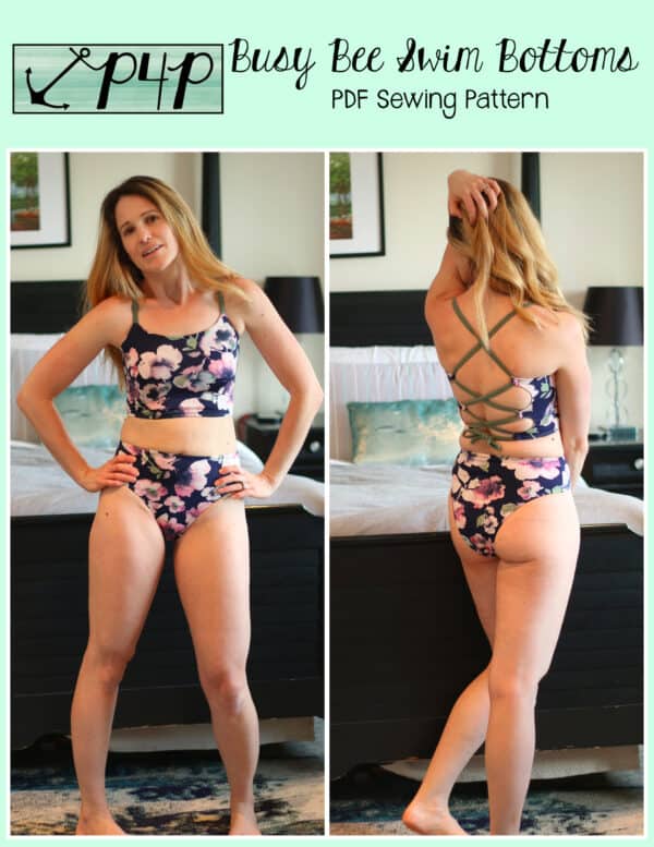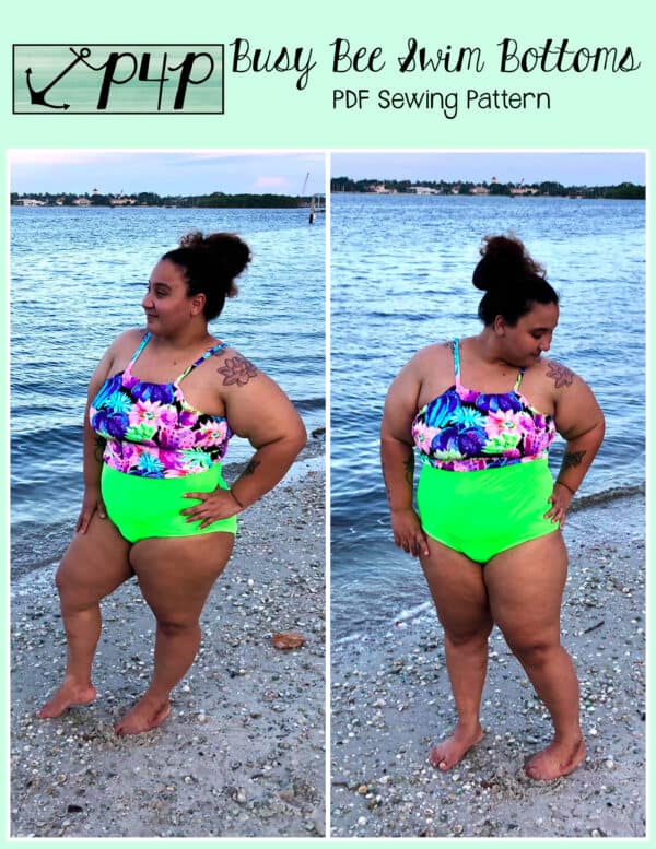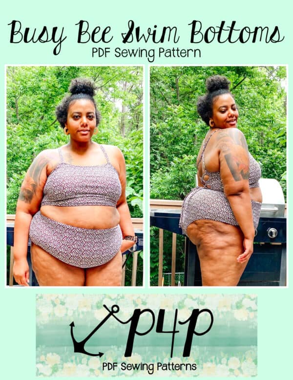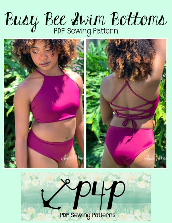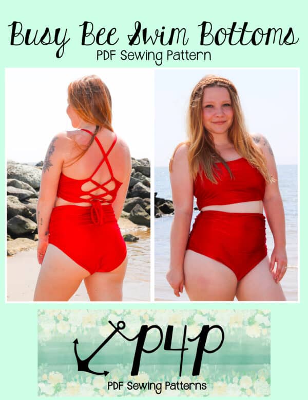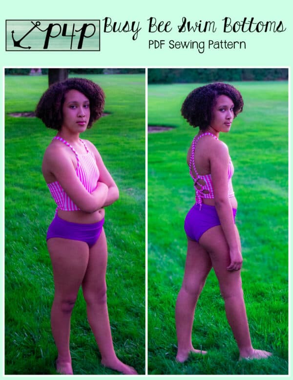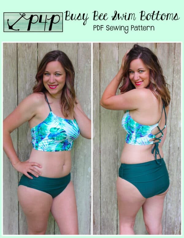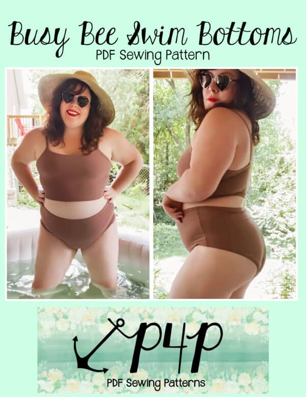 The Busy Bee Swim Bottoms will have your swimsuit drawer full in no time with a variety of looks! You can mix and match with your tops easily depending on your mood or where and who you’re going swimming with! Feeling like you want more coverage- you can grab the high rise and brief options. Feeling like baring it all for less obtrusive tan lanes…go for the cheeky and low rise. And you can pick between to with a mid rise just below the belly button. Mix in some ruching at the side seams for a fun detail. These bottoms are very simple and quick to make with the waistline and leglines hemmed under with swim elastic. You can choose to partially line or fully line.