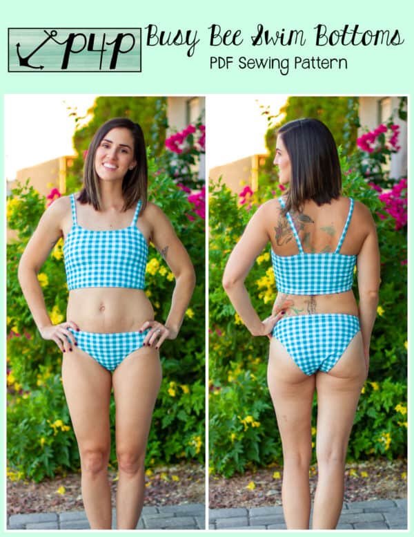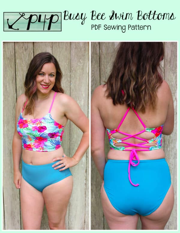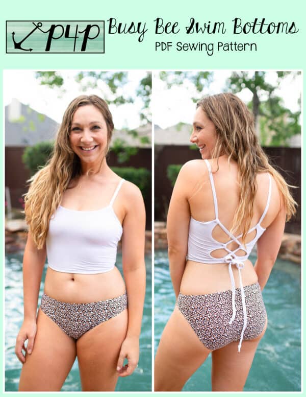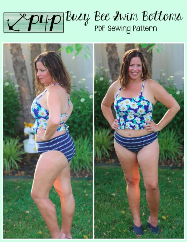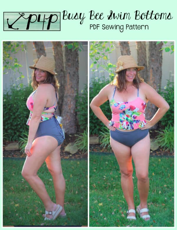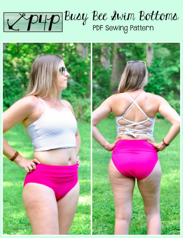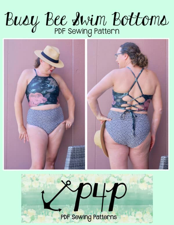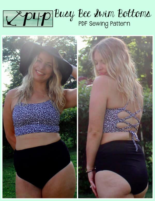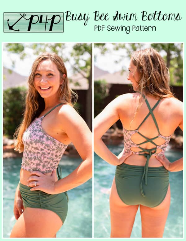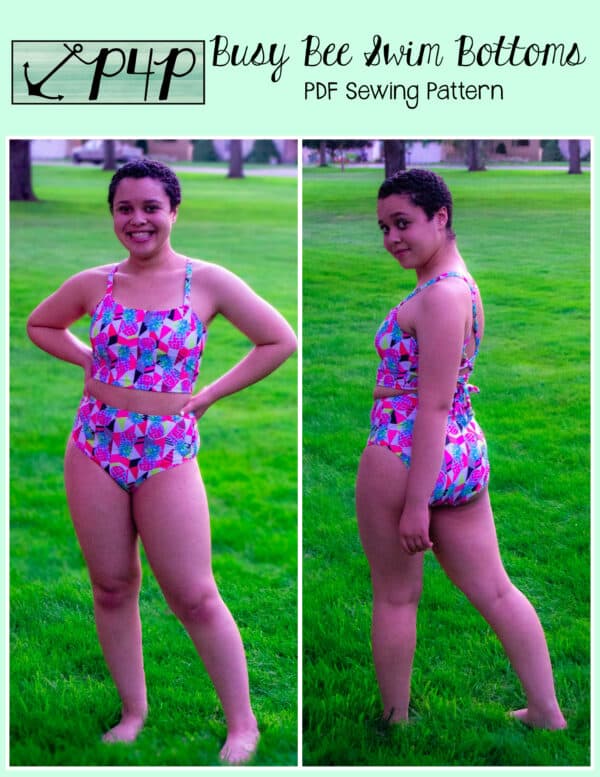 The Busy Bee Swim Bottoms will have your swimsuit drawer full in no time with a variety of looks! You can mix and match with your tops easily depending on your mood or where and who you’re going swimming with! Feeling like you want more coverage- you can grab the high rise and brief options. Feeling like baring it all for less obtrusive tan lanes…go for the cheeky and low rise. And you can pick between to with a mid rise just below the belly button. Mix in some ruching at the side seams for a fun detail. These bottoms are very simple and quick to make with the waistline and leglines hemmed under with swim elastic. You can choose to partially line or fully line.