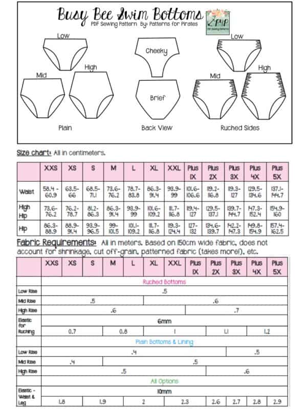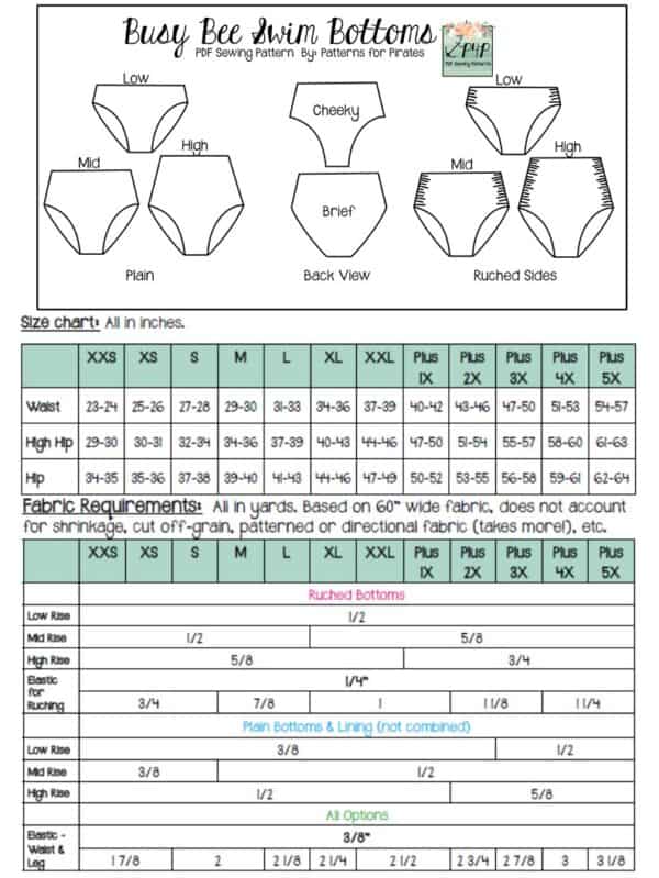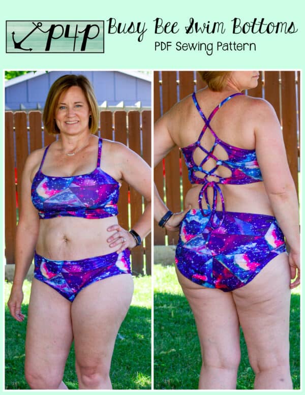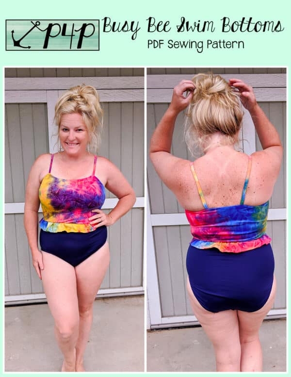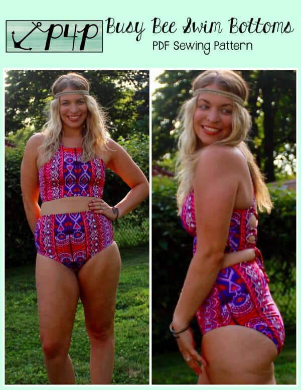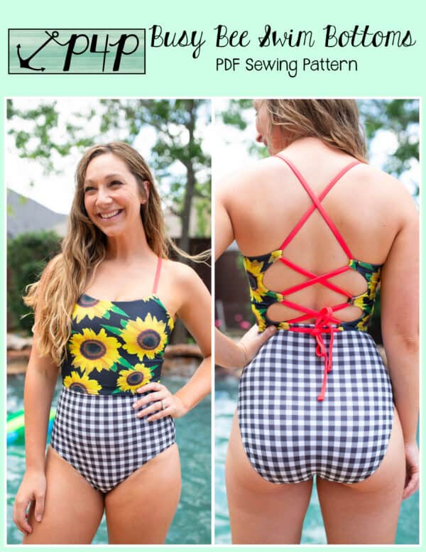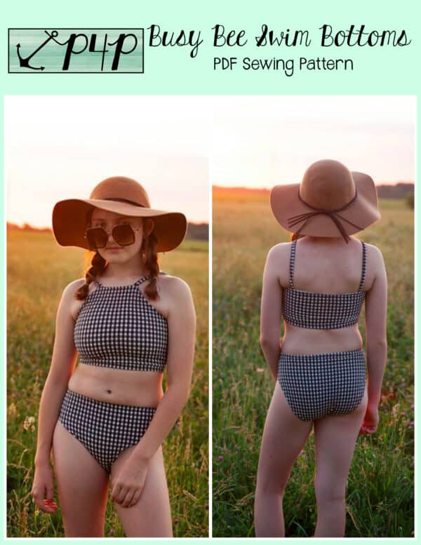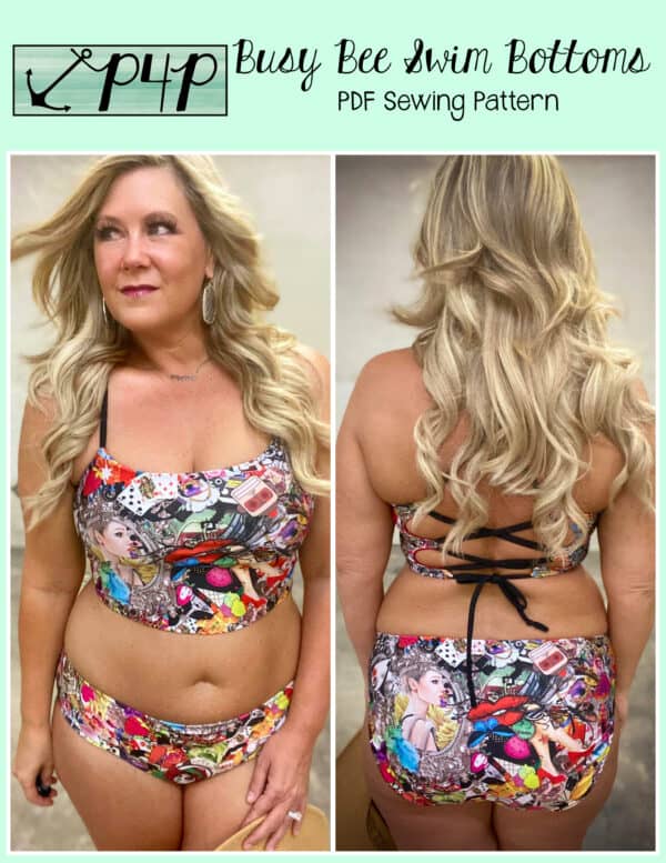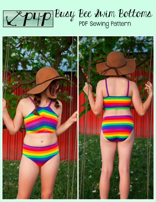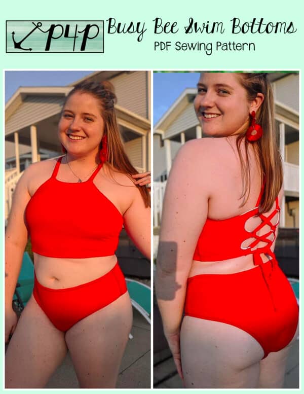 The Busy Bee Swim Bottoms will have your swimsuit drawer full in no time with a variety of looks! You can mix and match with your tops easily depending on your mood or where and who you’re going swimming with! Feeling like you want more coverage- you can grab the high rise and brief options. Feeling like baring it all for less obtrusive tan lanes…go for the cheeky and low rise. And you can pick between to with a mid rise just below the belly button. Mix in some ruching at the side seams for a fun detail. These bottoms are very simple and quick to make with the waistline and leglines hemmed under with swim elastic. You can choose to partially line or fully line.