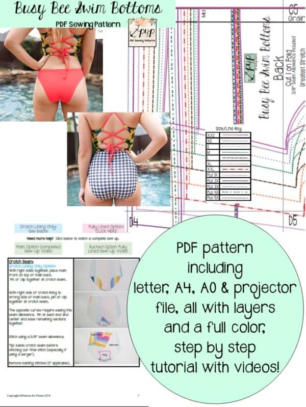 Enjoy several videos throughout the tutorial like adding/removing length, complete sew ups of ruched, plain, partially and fully lined bottoms.