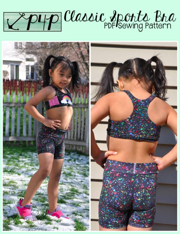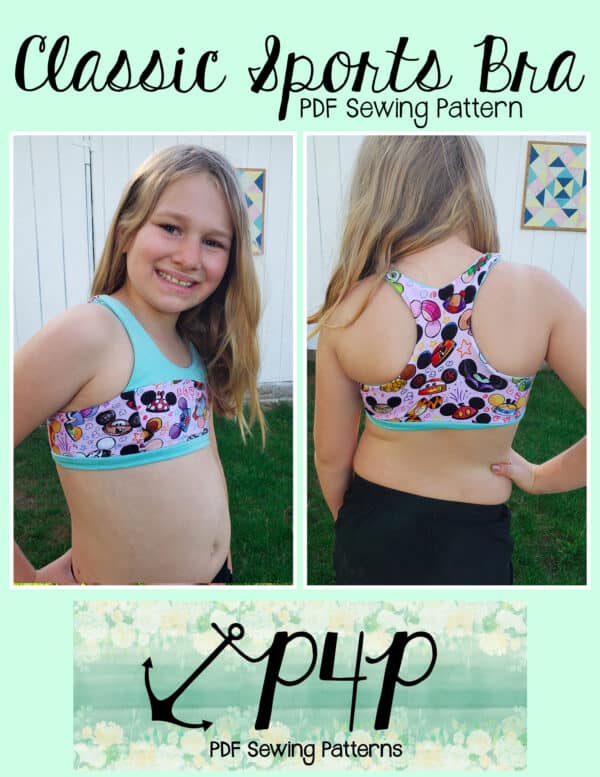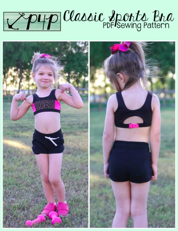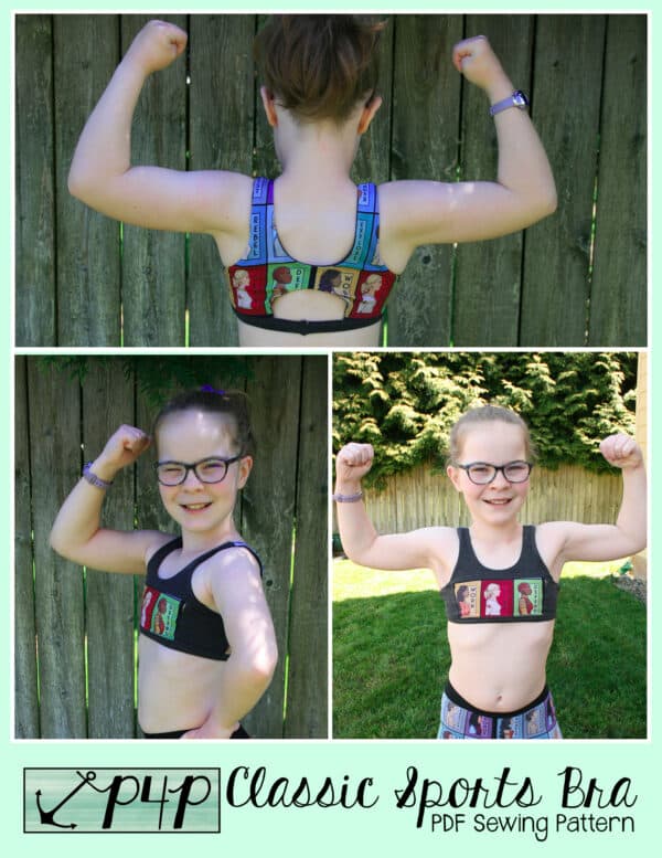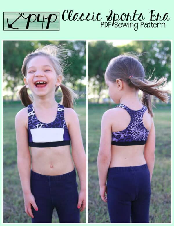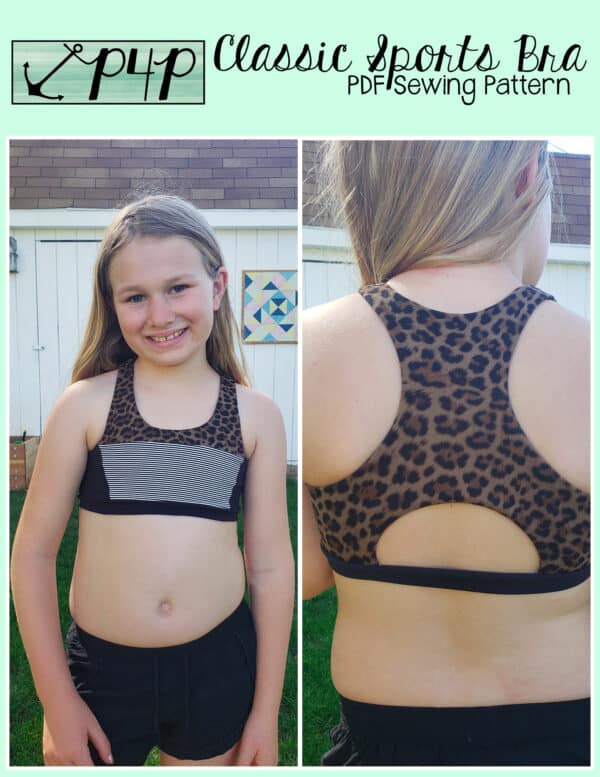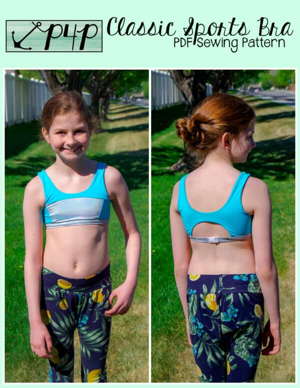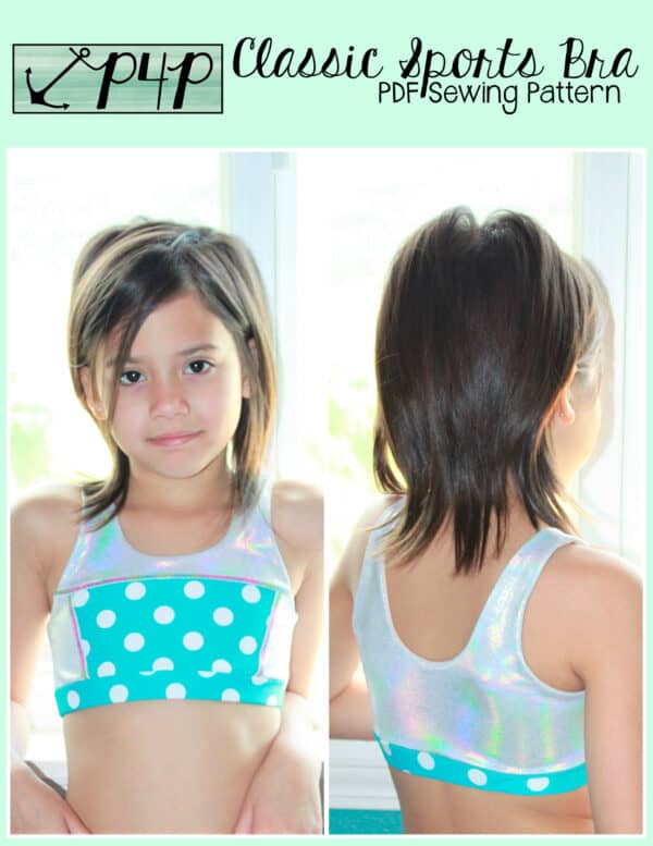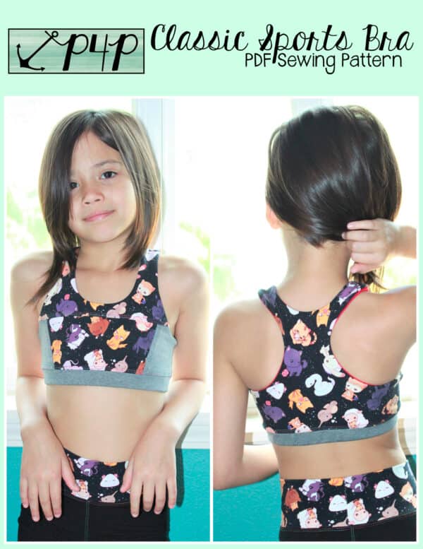 This pattern is the perfect beginning bra pattern to dip your toes in bra making. You can create a sports bra with athletic knits, sleep/lounge-wear with a cotton spandex, or a practical everyday training bra for older kids that are needing some coverage and support.