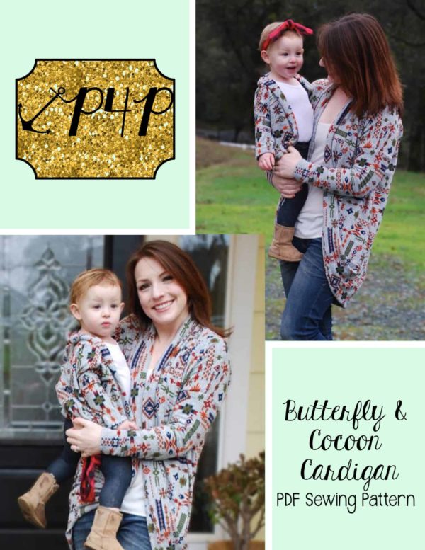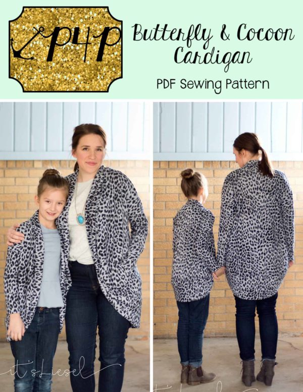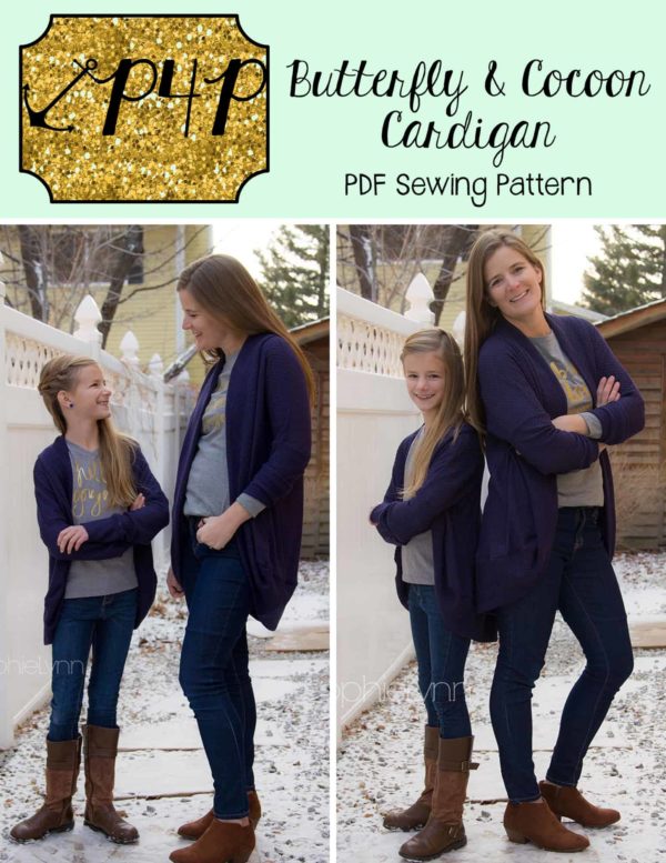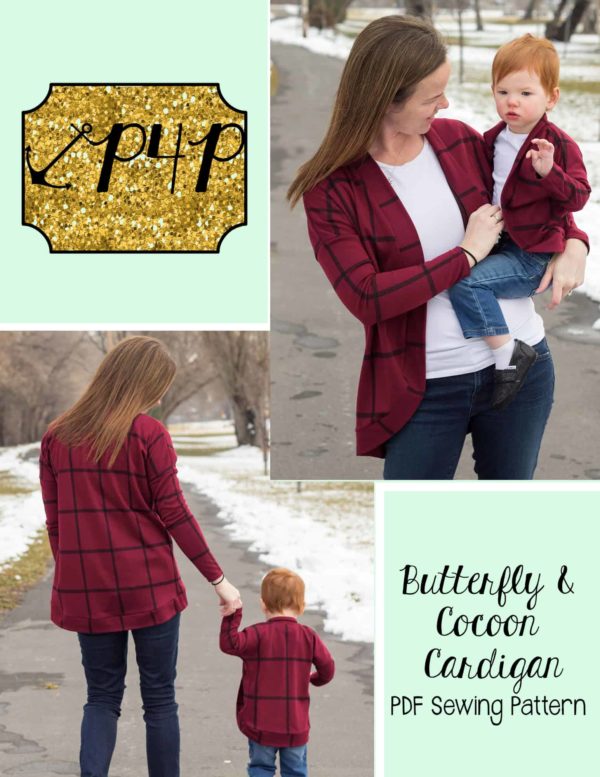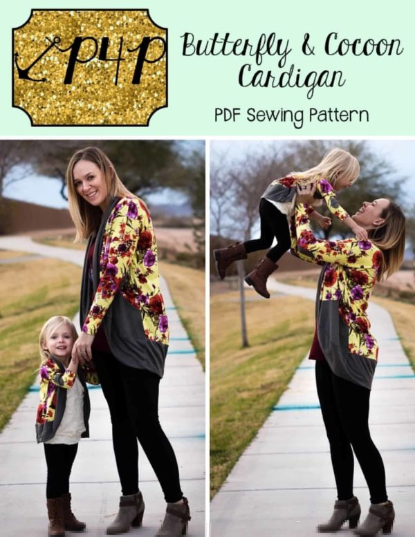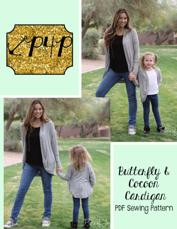 This bundle contains two patterns : Butterfly Cardigan (youth) and Cocoon Cardigan (adult)
