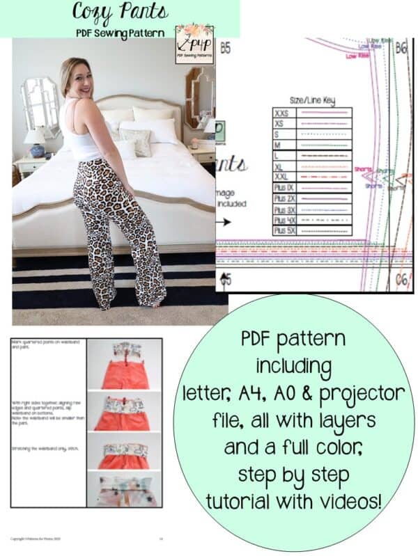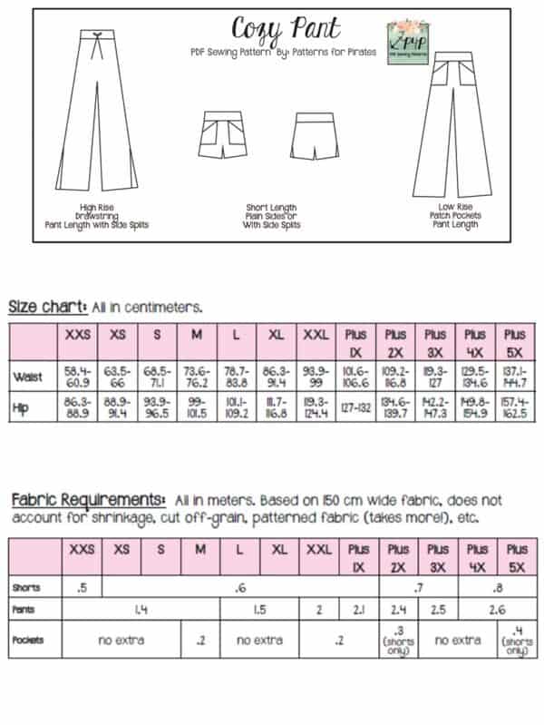 This pattern is drafted for a high stretch knit. The waistband needs 75% stretch (cotton spandex, double brushed poly, ribbed knits, sweater knits are some examples that work well). The main pants need 50% stretch and our favorites were sweater knits, ribbed knits, double brushed poly, cotton spandex, french terry, ponte (makes a great dressier option), and athlethic knits. The drawstring option allows you to use fabric for the waistband that doesn’t have the best rocovery as well as adding a cute asthetic detail.