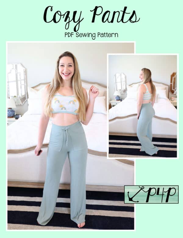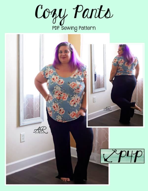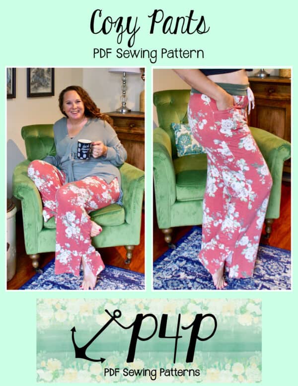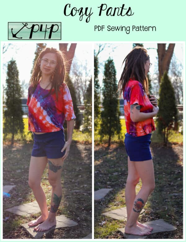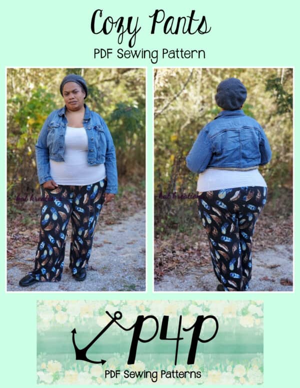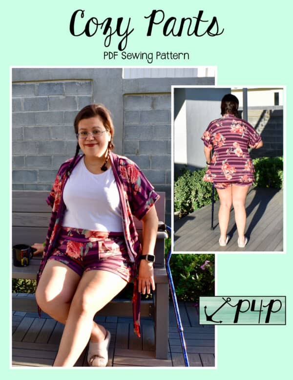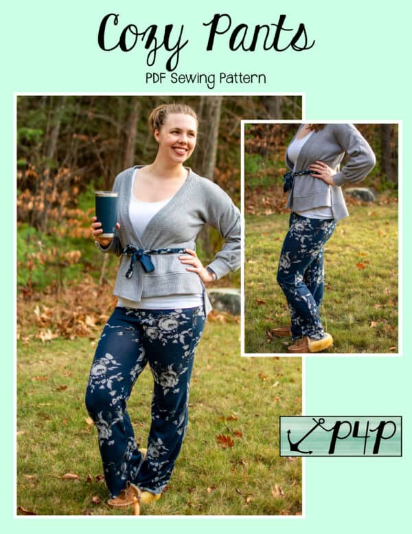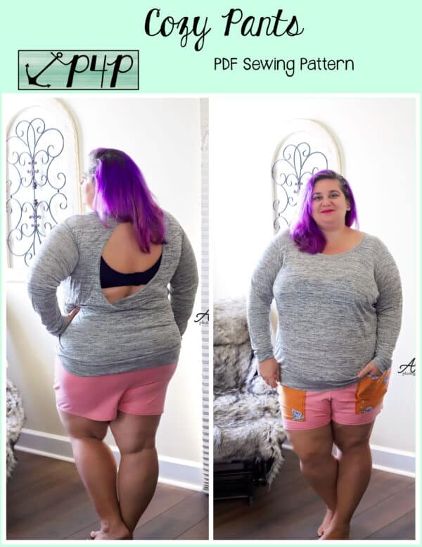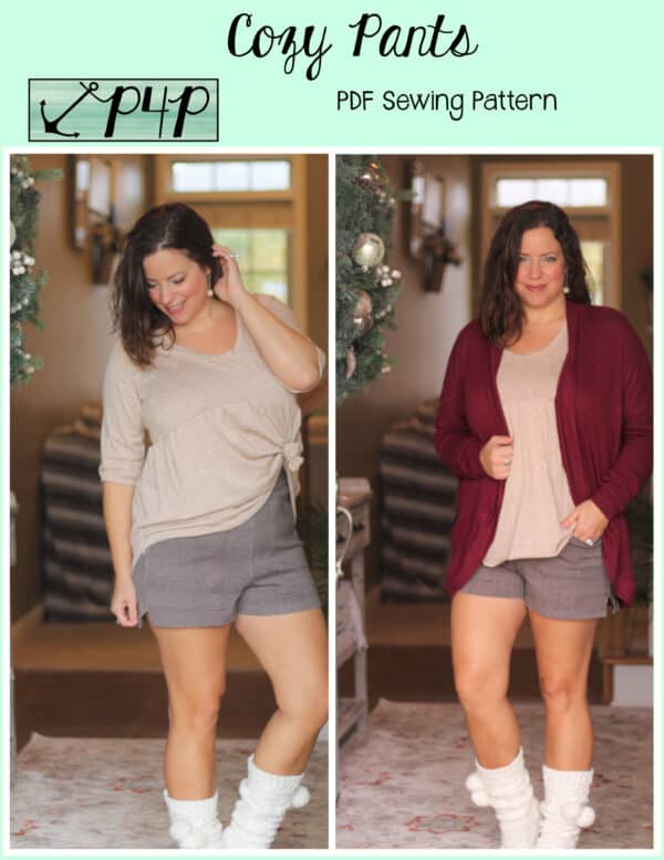 The Cozy Pants are what your loungewear and secret pajama dreams are made of! Grab a brushed sweater knit for a super cozy lounge set or go with a nice nylon ponte and wear them as a dressier pair of slacks staying super comfortable with both options! Choose from a mid rise or a high rise on both short or pant lengths. You can sew up the side seams plain or add a fun side split detail. The front patch pockets are nice a roomy and have a unique straight upper edge. You can add a drawstring for fabrics without great recovery or just becuase it’s an adorable detail to have! Any options will give a flattering silouhette with a slim fit from waist through hip and then looser through the legs that give you great lines and will make you feel comfortable and cute at the same time. Just be prepared to make SEVERAL becuase you will not want to take these off whether you’re sleeping, doing household chores, working, running errands, these pants are the answer you’ve been looking for!