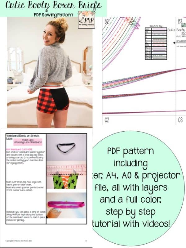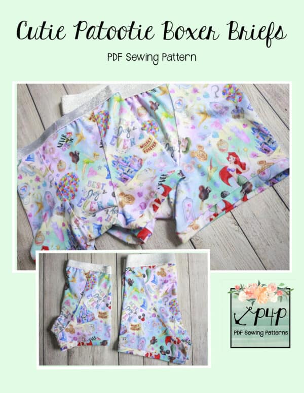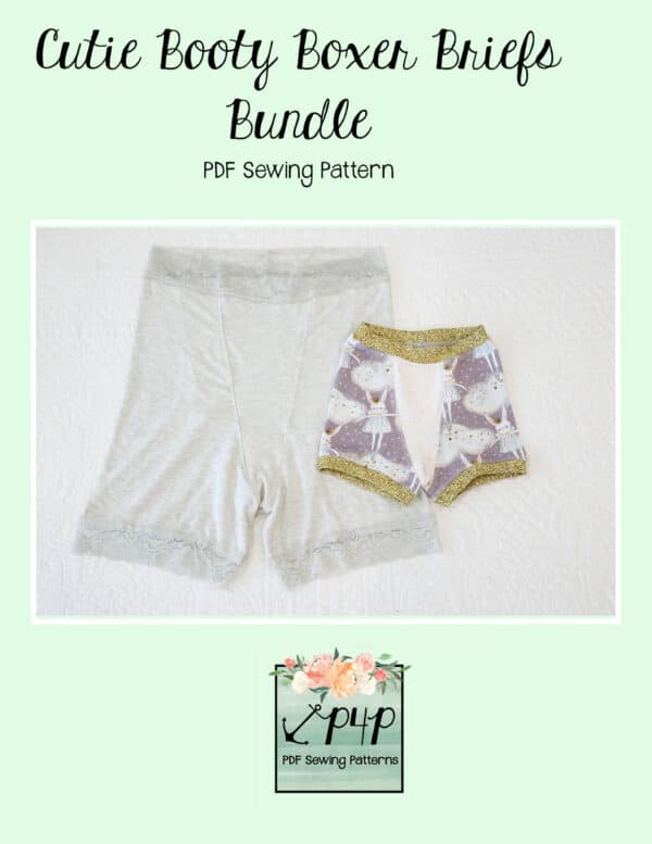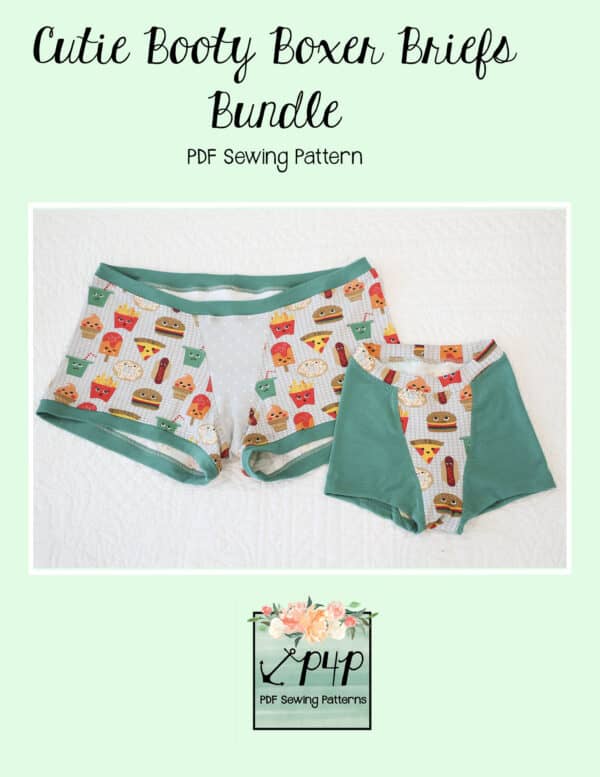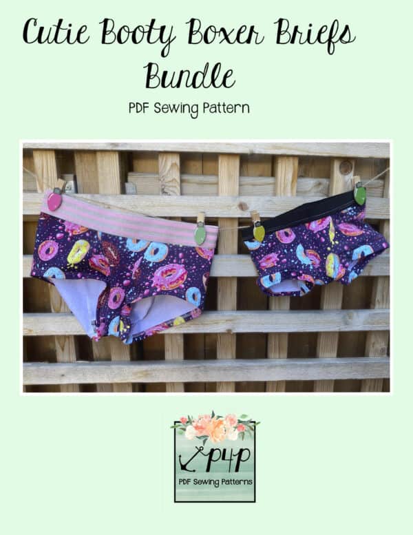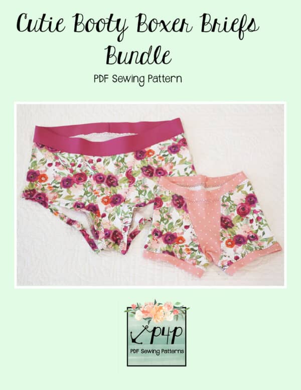 The Cutie Booty and Cutie Patootie Boxer Briefs are one of my very favorite styles of undies! The center front and back pieces give a fun oppurtunity to use up some of those smaller pieces we love and keep. I personally love this style for sleeping in warmer months. The boxer brief style is so comfortable and doesn’t ride up into a terrible wedge during the night! Horray! 😉 They are also perfect for wearing under dresses. They are drafted to be a snug fit, but not compressive so you’re super comfortable moving around and little ones have a bit of growing room.