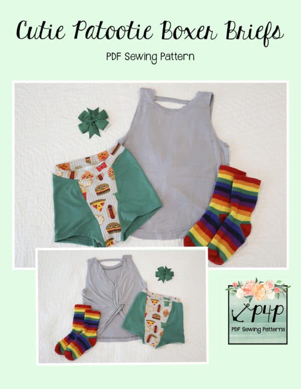 The Cutie Patootie Boxer Briefs are an adorable and comfortable traditional boxer brief drafted to the girls measurement chart. This style is a snug fit all around and works best with high stretch knit fabrics. There are a ton of options to please the little one you’re sewing for to find the perfect combo they love most. My little one wears these under almost everything, but they’re especially perfect for under dresses and sleeping in with a top or nightgown! The boxer brief style ensures they wont be riding up into an uncomfortable wedge we all dread!
