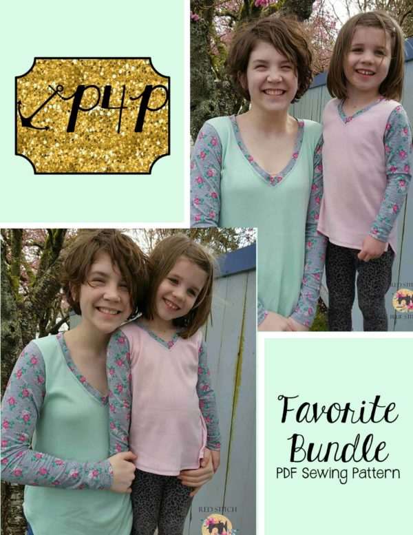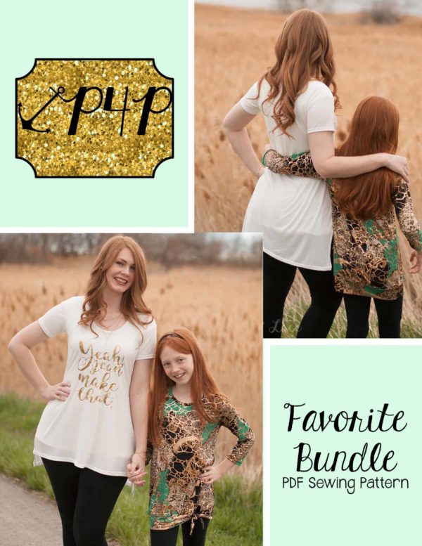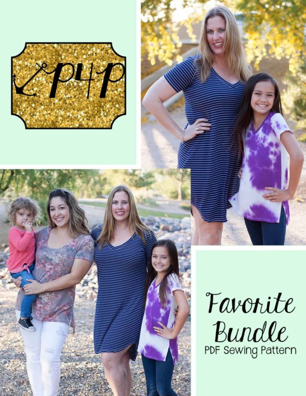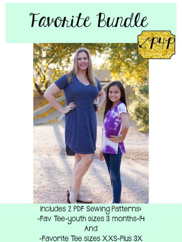 This bundle contains two patterns : Fav Tee (youth) and Favorite Tee (adult – hourglass figure)