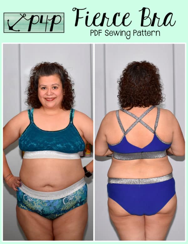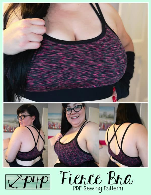 The Fierce Bra is a quick and simple soft knit bra pattern. You can use just cotton spandex for a soft, comfortable lounge bra or you can use athlethic knit, inner line with power mesh and use the removable cups for more support. The more support option can take you into a light support sports bra great for walks, yoga and light impact activities.