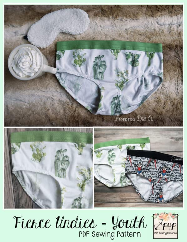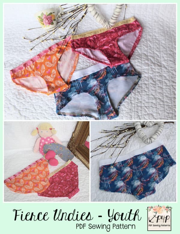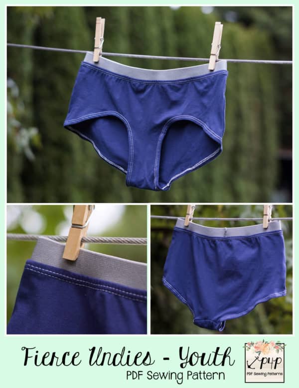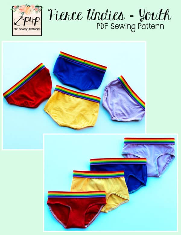 This pattern is quick and simple sew that is a great scrap buster! These Fierce Undies come with a full coverage brief legline and a shorties leg line. You can choose from low rise or mid rise for either legline. The legs are finished with hemming (brief option is hemmed with clear elastic) and the waistband is an exposed elastic.