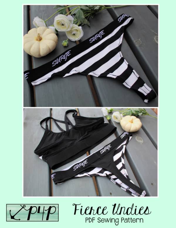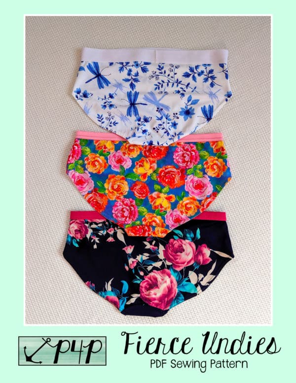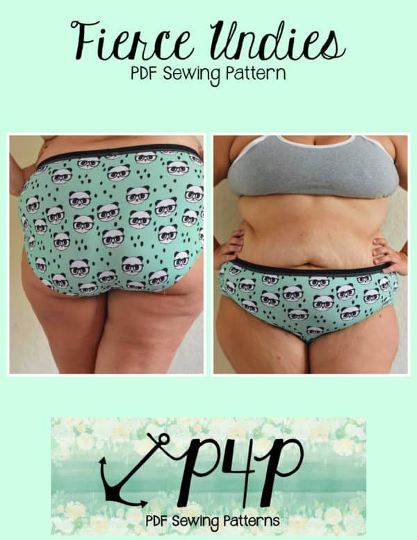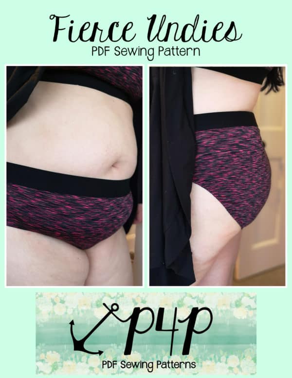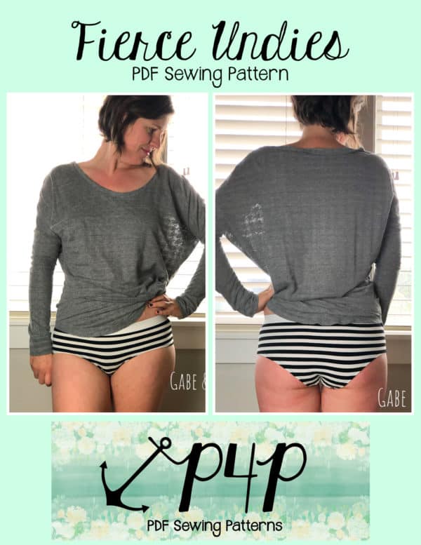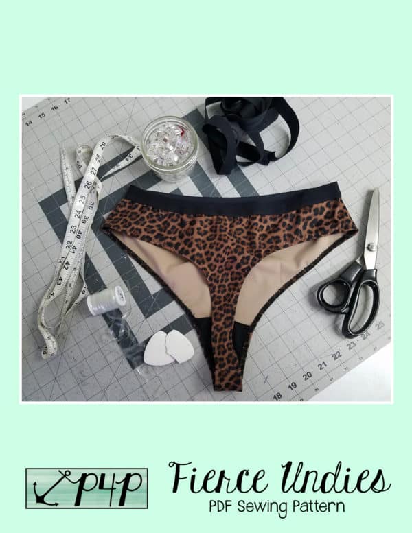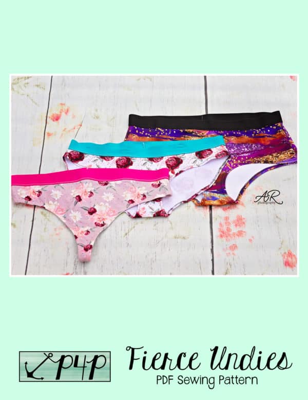 The Fierce Undies are bound to have your favorite combo with all the options! It is a very quick and easy sew to keep you through your scrap bin! Options include low, mid, and high rise. Leg lines include cheeky, full coverage brief and thong. It shows off an exposed elastic waistband and hemmed legs. Some options include clear elastic inside the hem.