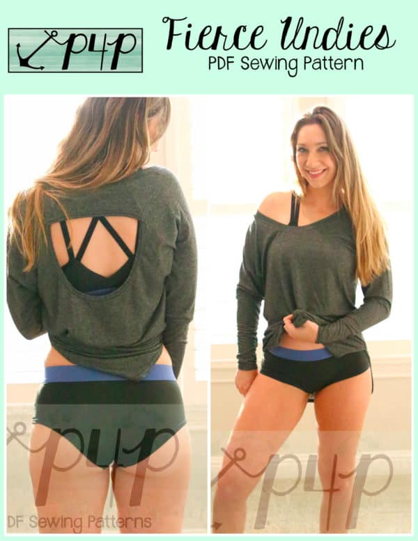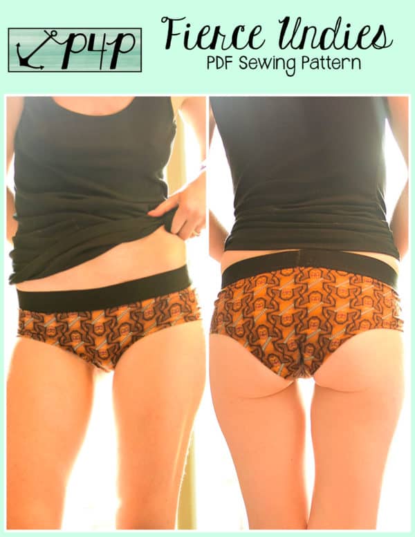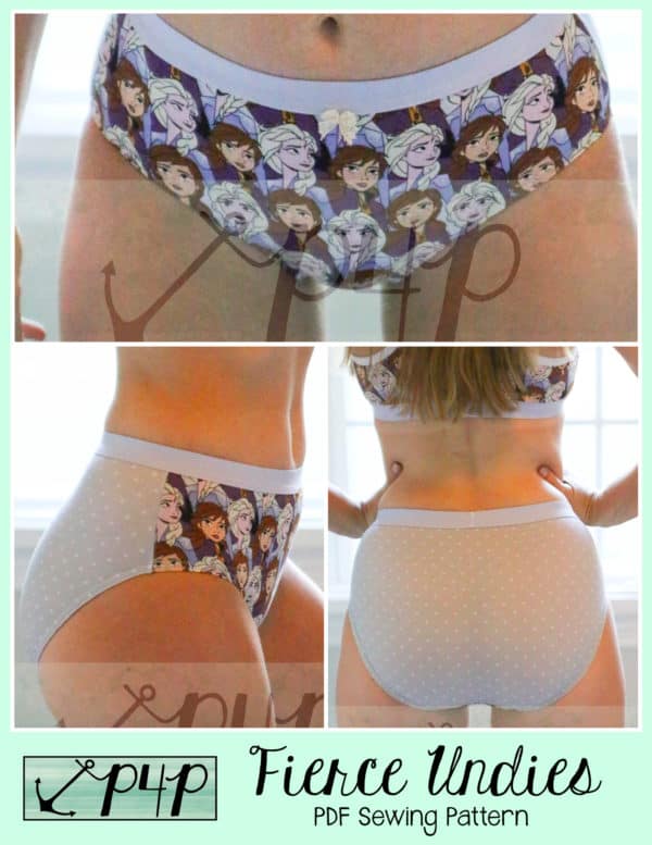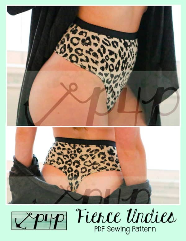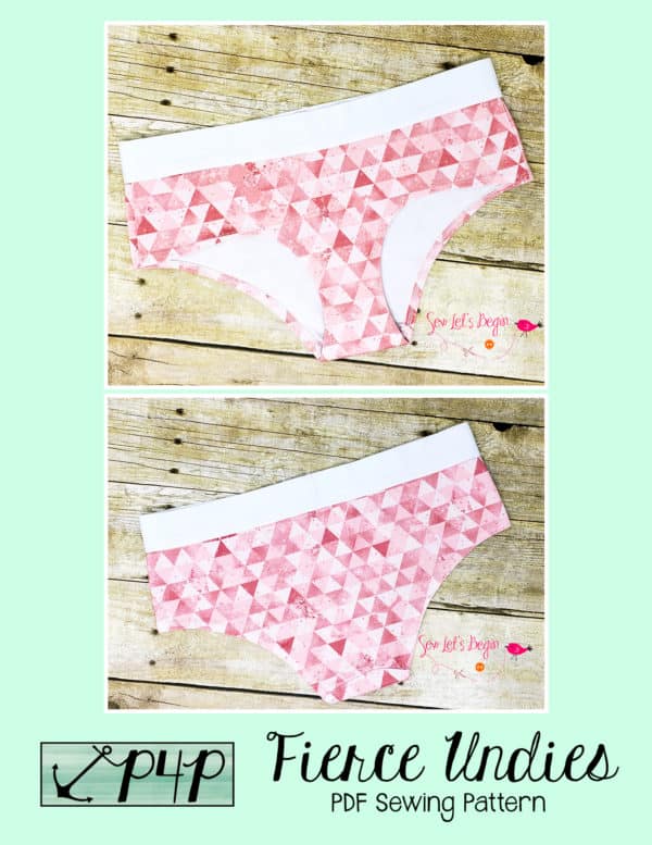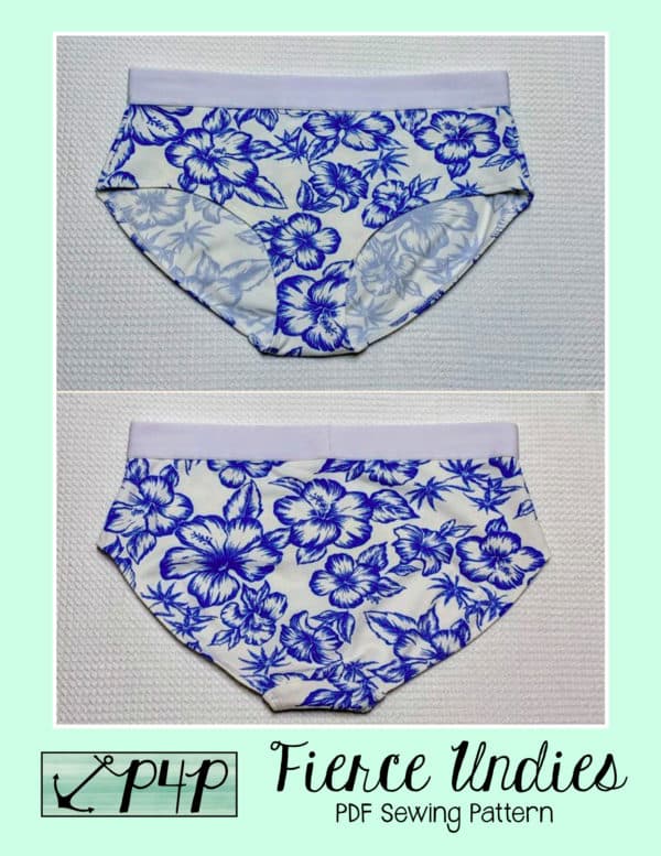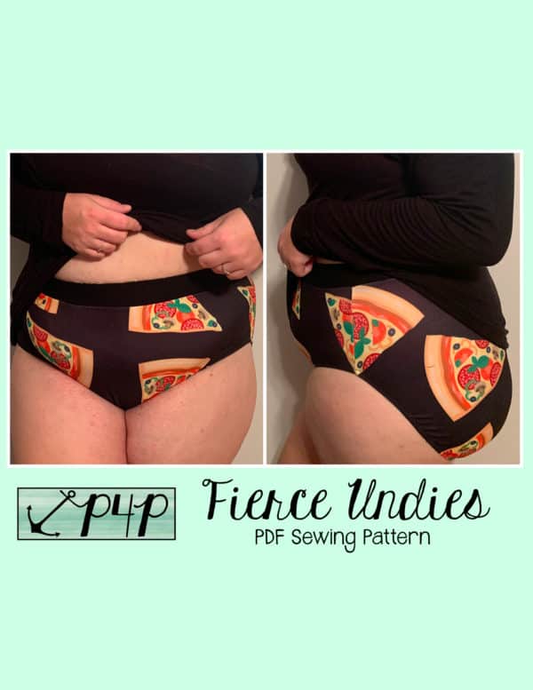 The Fierce Undies are bound to have your favorite combo with all the options! It is a very quick and easy sew to keep you through your scrap bin! Options include low, mid, and high rise. Leg lines include cheeky, full coverage brief and thong. It shows off an exposed elastic waistband and hemmed legs. Some options include clear elastic inside the hem.