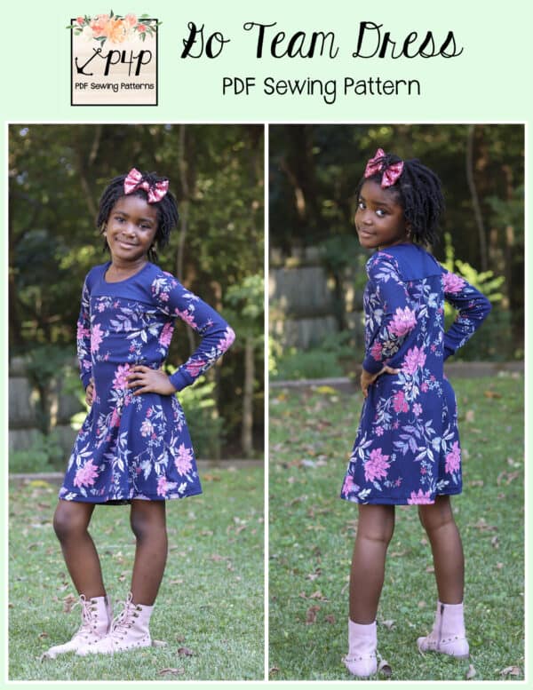 The Go Team Dress-Youth is drafted for t-shirt knits like a tri-blend jersey, lightweight cotton spandex, rayon/bamboo spandex and the like. You’ll need a high stretch knit like cotton spandex, rayon/bamboo or ribbed knit for neckbands and long sleeve cuffs.