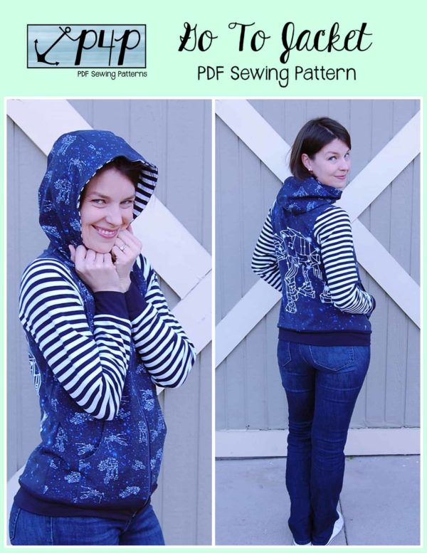 The Go To Jacket is the perfect wardrobe staple for fall and spring weather! You can make it out of a lighterweight fabric for those days you just need a bit of coverage or make it from a heavier, warmer fabric like fleece to keep you from being chilly! It includes a bomber neckband and 3 piece hood for two drastically different looks as well as two pocket options- kanga pockets and inseam pockets. You can pick from the longer booty covering tunic length or the more traditional shirt length. You can hem your long sleeves, cuff them or add awesome thumbhole cuffs too! And don’t worry, these thumbholes wont look silly or gape open if you’re not wearing them on your thumb either- so enjoy them on or off all day long 🙂