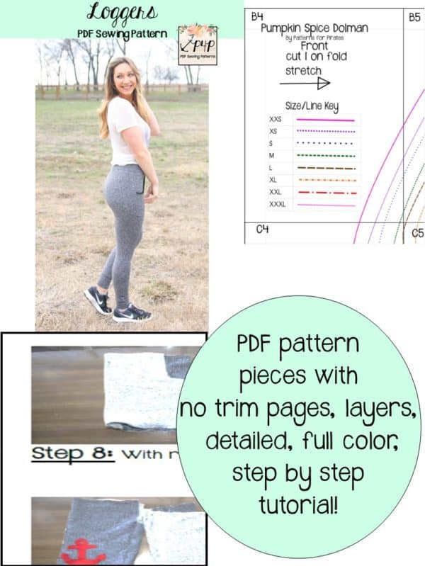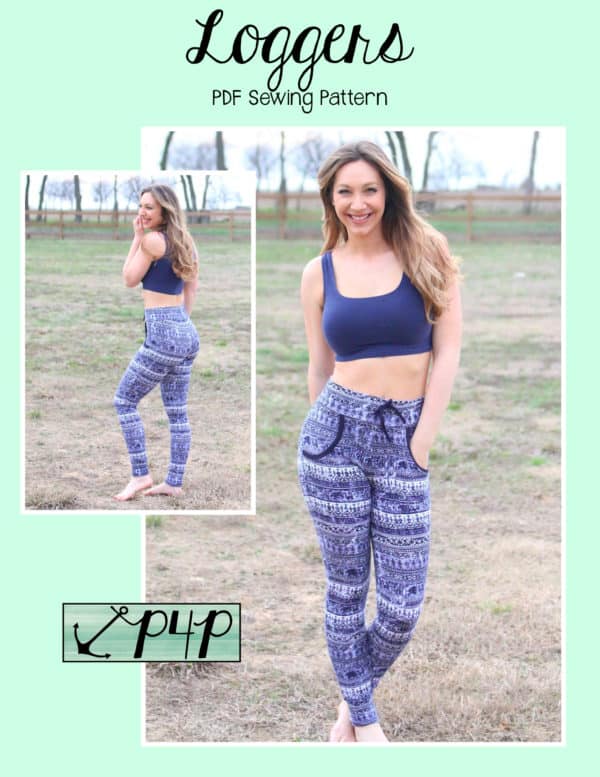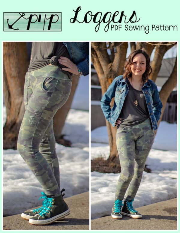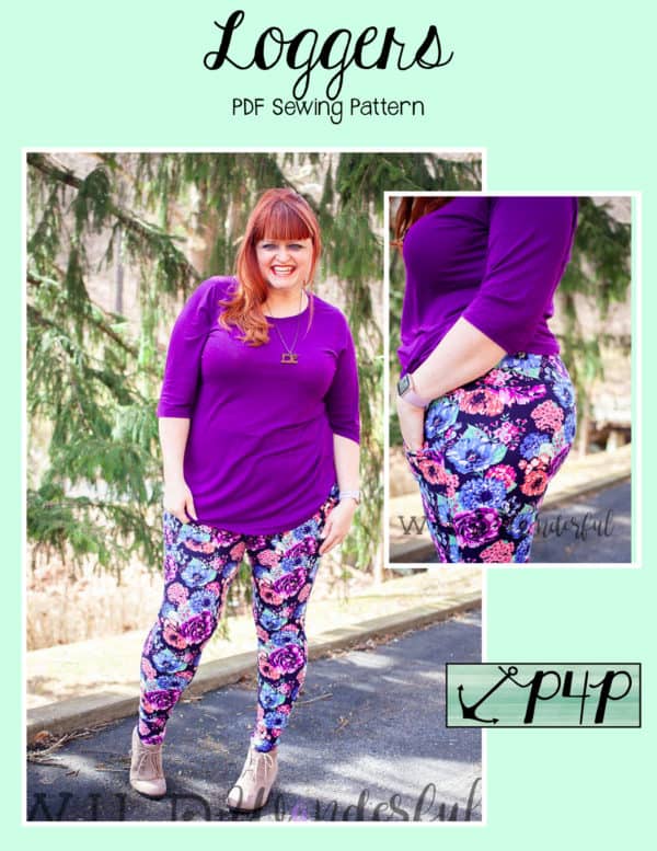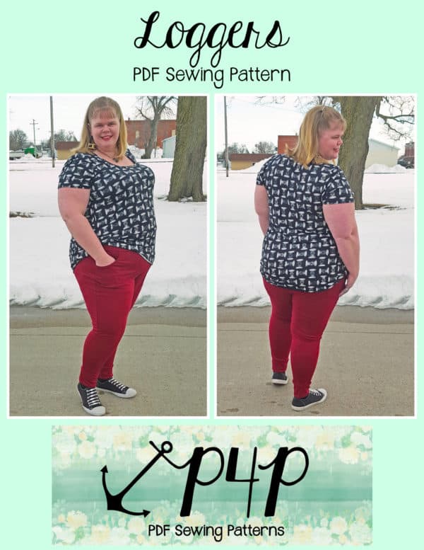 Maybe you can’t decide between the fitted look of leggings and the great pockets of joggers… Enter the perfect choice of LOGGERS 😉 the tight fit pant with pockets and cuffs! These loggers are tight fit, so still need a high percentage of stretch (we recommend 50% stretch with a little vertical- although you can use fabric with zero vertical they are more comfortable long wear with some vertical stretch). You can use performance fabric for a great pair of work out wear bottoms, french terry for a cozy pair, ponte for a thicker fabric, thermal for some jammies, cotton lycra, sweater knit and more! The short length make great lounge wear, work out wear, under dresses or swim cover up shorts!