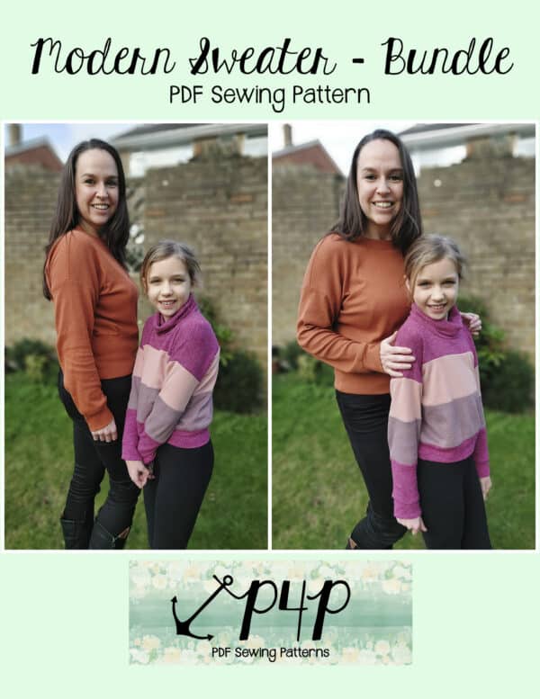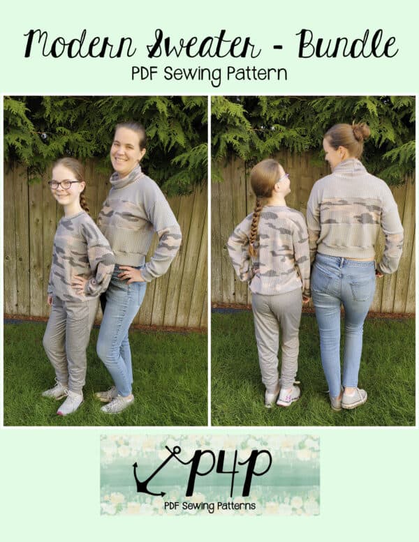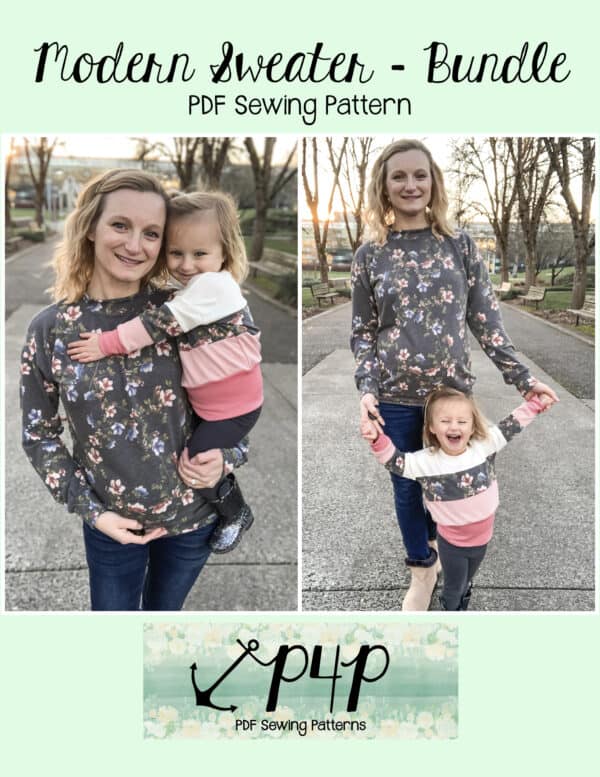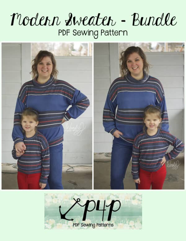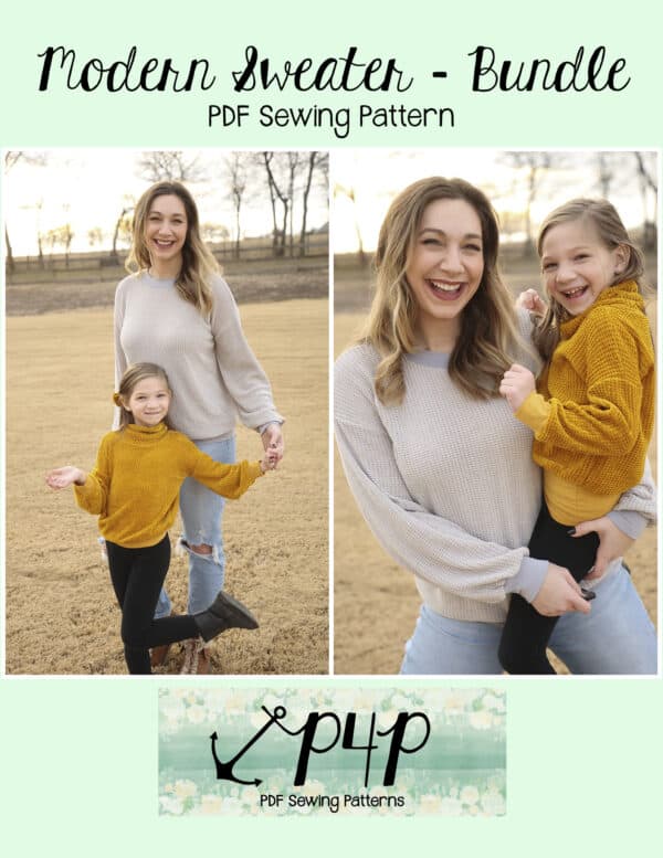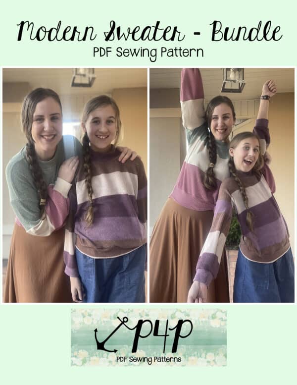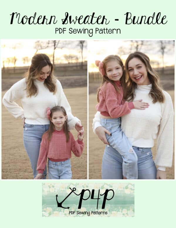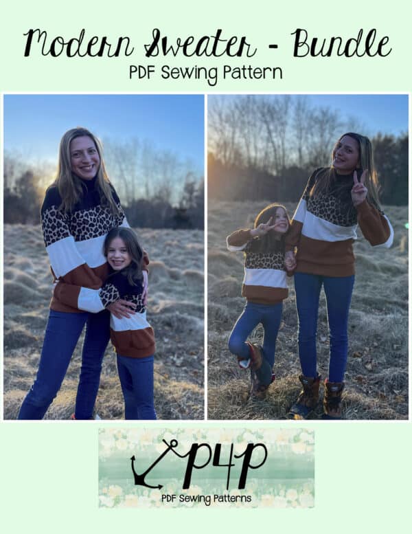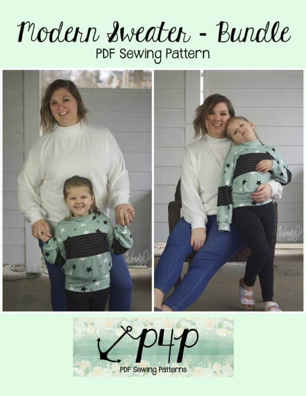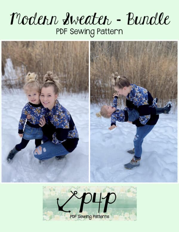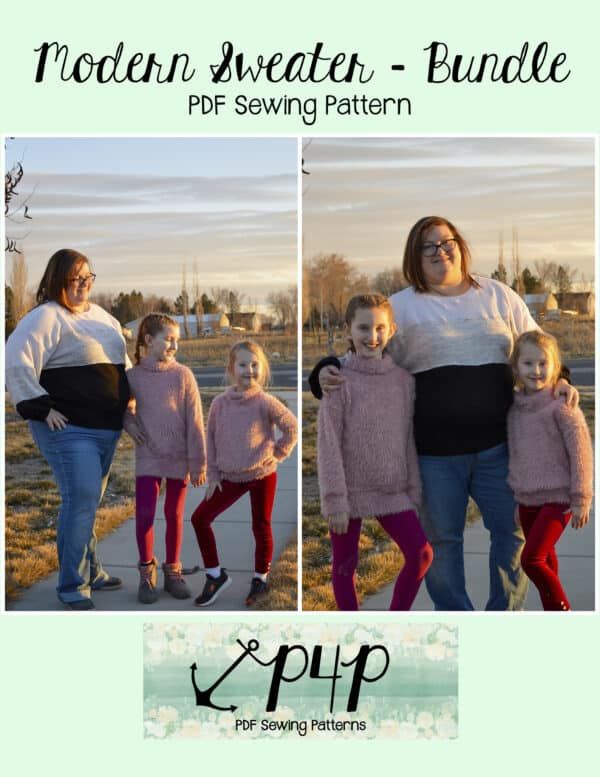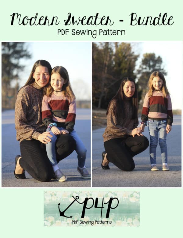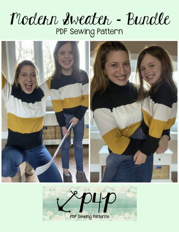The Modern Sweater has a gret combination of timeless and trendy options. You also recieve each option with colorblocked pieces. So you don’t have to do the work yourself to get that adorable colorblocked look. You can choose from trendy lantern sleeves or go classic with traditional sleeves. Go with a current crop that pairs perfectly with high waisted bottoms or choose a shirt length that will always be comfy, cozy and classic! You can create such different looks with a nice thick neckband, a turtleneck or a nice warm fold over turtleneck. Add on the short or tall waistband to change up the finished look and length! Not quite ready to rock a crop length, but love the silhouette? Use the tall waistband to give you extra coverage while maintaining that blouse at the right spot for a flattering look. The tall waistband can take the shirt to more tunic just like that as well. The bit wider and looser neckline is not only more comfortable, but also gives it the perfect modern lines you see everywhere currently. You can make it is a t-shirt jersey for a great casual tee as well!