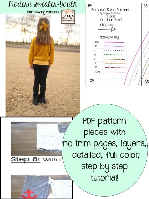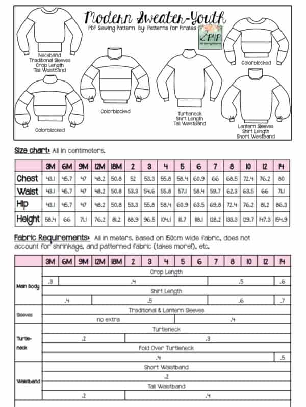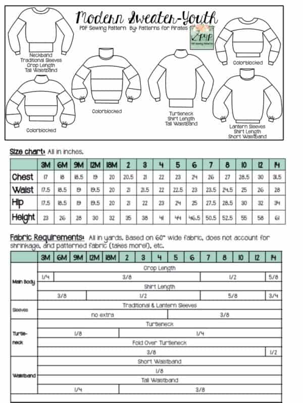 Youth Sizes included: 3m,6m,9m,12m,18m,2,3,4,5,6,7,8,10,12,14 (sizing/measurement chart on last picture). Youth pattern available alone here: Modern Sweater- Youth