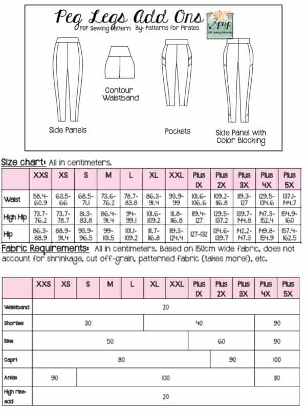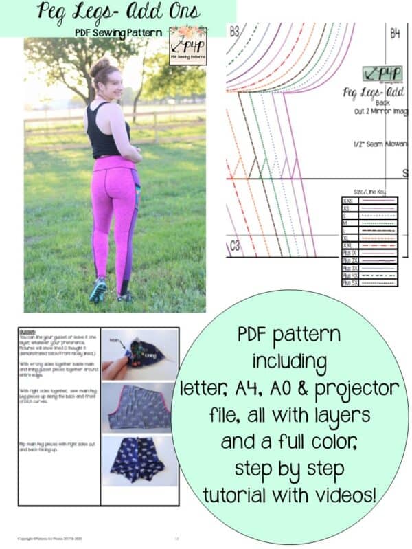 This will add on to the original to add more options 🙂 Including: Side Panel, Color Blocked Side Panel, Side Panel Pocket, Waistband Pocket, Contoured Wasitband, and Gusset. Each option includes a cutline for low/mid rise and high rise.