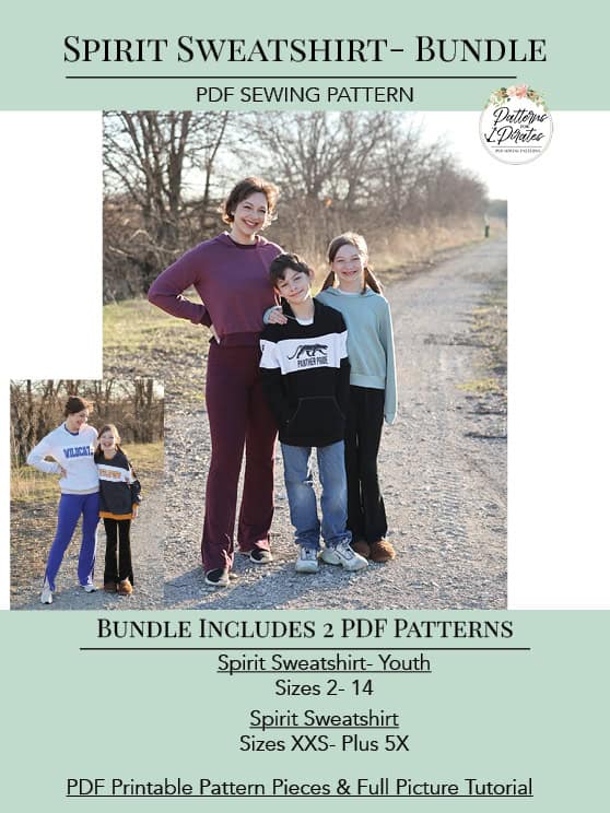 The Spirit Sweatshirt Bundle includes both the adult and youth patterns, making it perfect for sewing matching outfits, coordinating family wardrobes, or just making sure everyone gets their own favorite cozy sweatshirt. With a relaxed, traditional fit that’s comfortable without feeling oversized, this sweatshirt is an easy everyday staple you’ll reach for again and again.