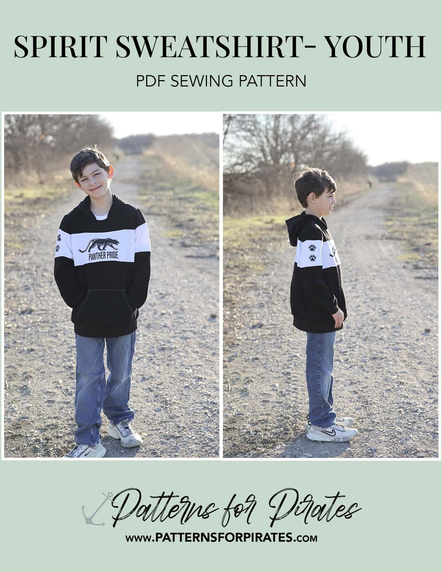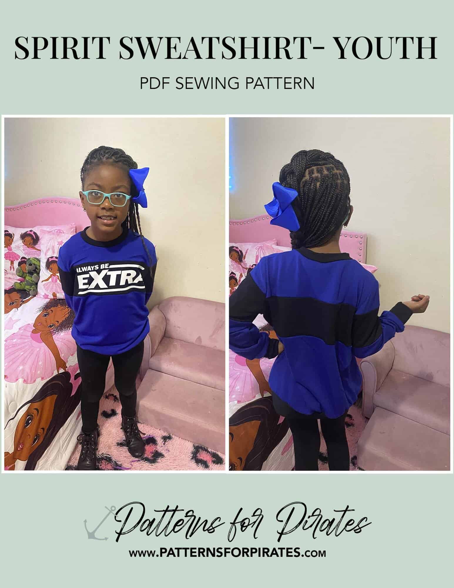 Pattern options for the Spirit Sweatshirt Youth include: