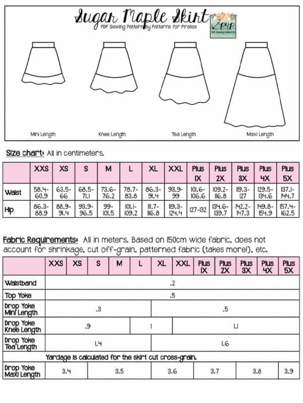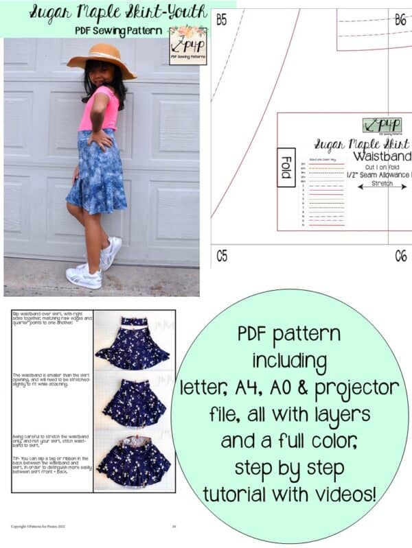 Youth Sizes included: 3m,6m,9m,12m,18m,2,3,4,5,6,7,8,10,12,14 (sizing/measurement chart on last picture). Youth pattern available alone here: Sugar Maple Skirt- Youth