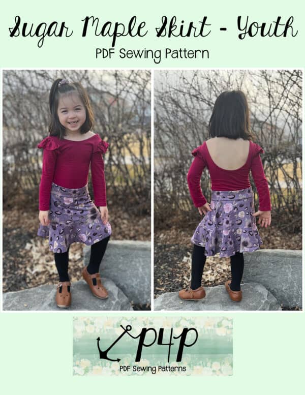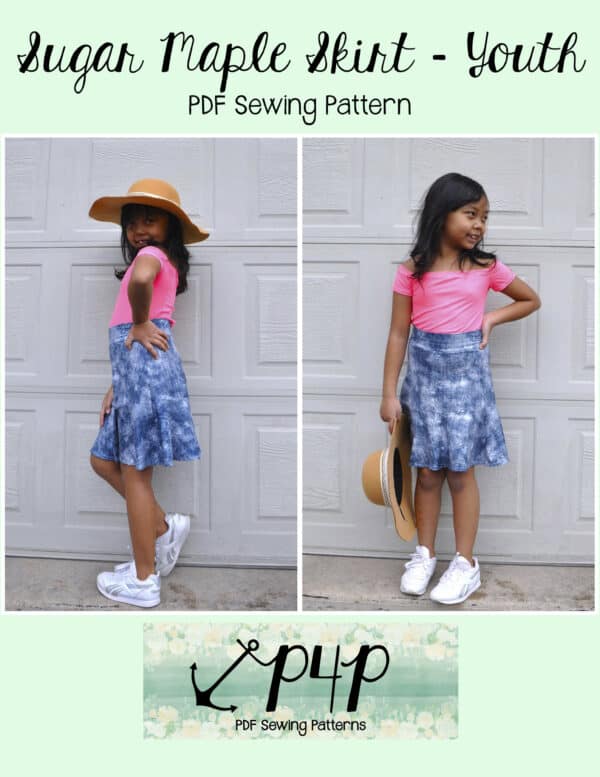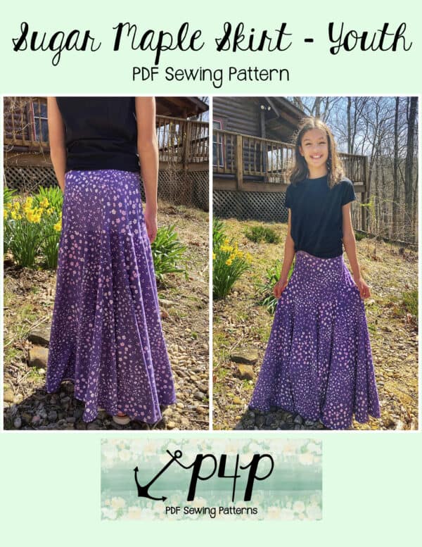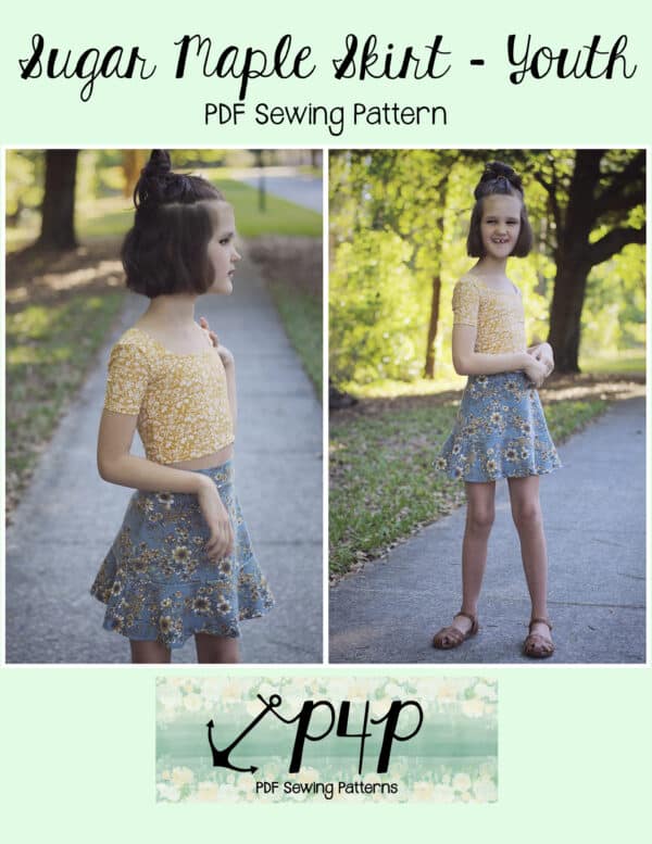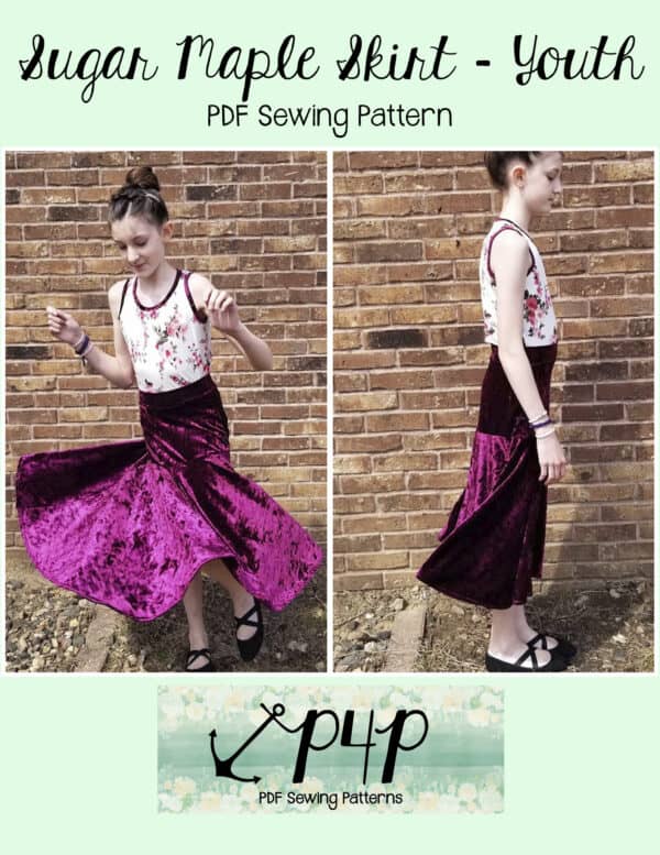 The Sugar Maple is a great basic skirt pattern to have, an excellent sewing project for beginners, and it comes together so quickly that you’ll end up making multiple before you even know what happened! You can use this pattern to create something casual, fun, modest, dressy, and everything in between. The simple construction of the knit yoga style waistband is geared for comfort in wearing and the different lengths provide opportunity for any style you’re after.