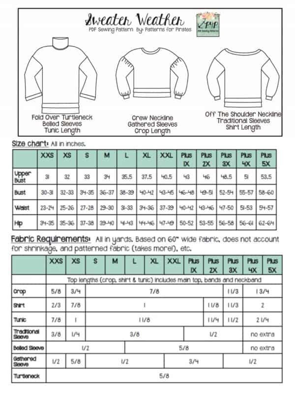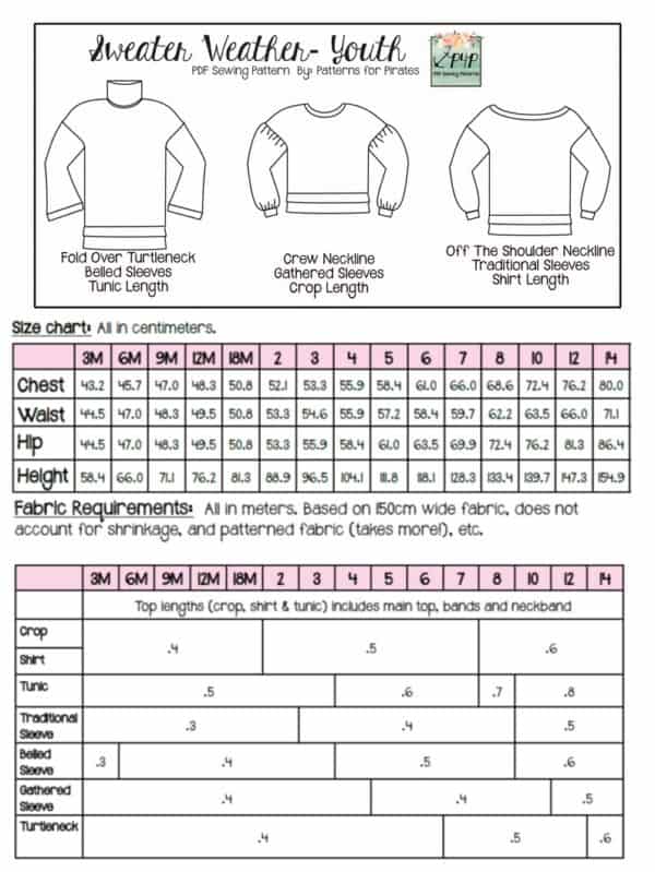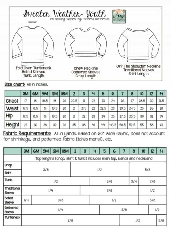 Youth Sizes included: 3m,6m,9m,12m,18m,2,3,4,5,6,7,8,10,12,14 (sizing/measurement chart on last picture). Youth pattern available alone here: Sweater Weather-Youth
