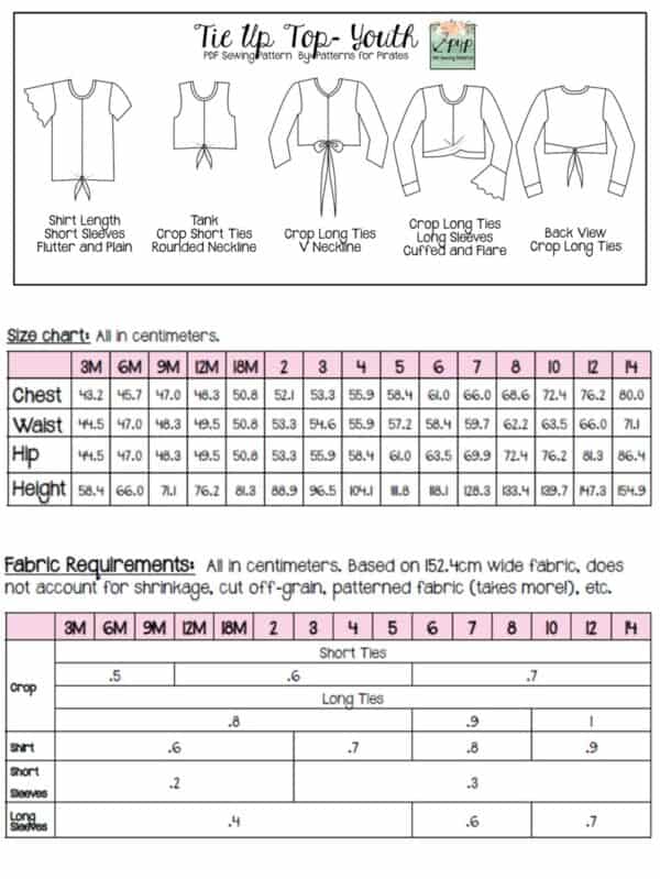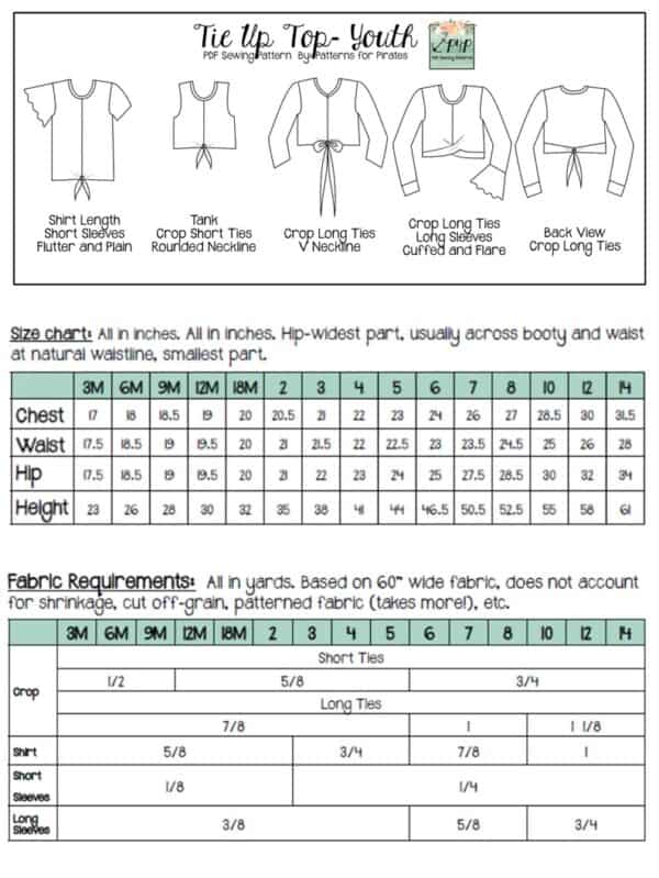 Youth Sizes included: 3m,6m,9m,12m,18m,2,3,4,5,6,7,8,10,12,14 (sizing/measurement chart on last picture). Youth pattern available alone here: Tie Up Top- Youth