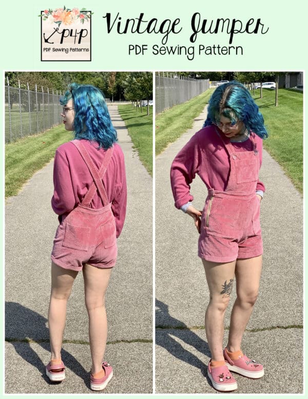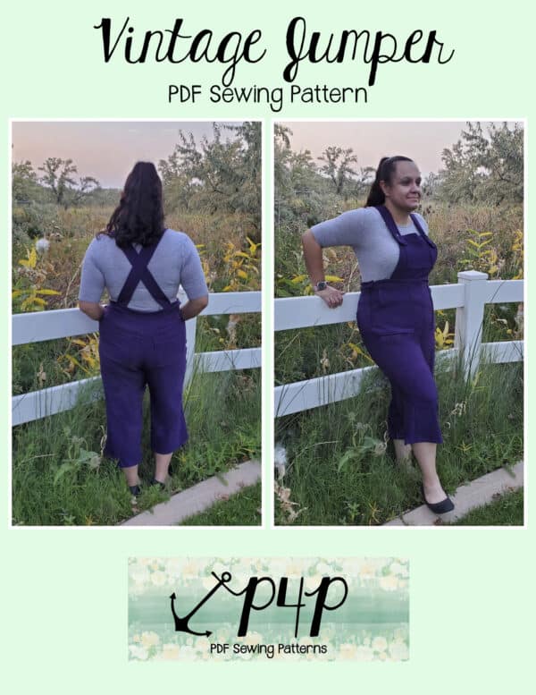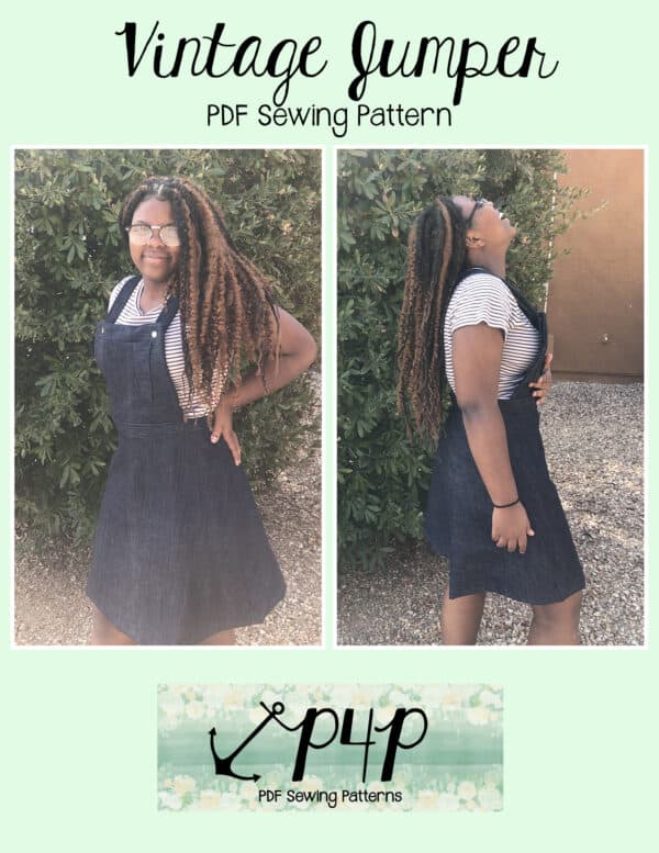 The Vintage Jumper is the perfect way to get custom fit overalls or jumper whether you’re petite, tall or have curves that most stores don’t manufactor for. It’s a garment that you simply can’t get by with something that isn’t made for you. So, have your overalls that are the perfect length and perfect curves just for you… and you will feel great in them! The retro feel of the snug fit at the natural waist is super flattering and adorable to boot. The hip is slim, but legs flare out wider. The back is also a vintage feel with 2 simple crossing straps. The back pant pieces have 2 waist darts that are easy to take in and out to make your perfect fit from full back hip to waist. You have so many options to choose from you can create a stack that all look unique. You can pair them with short or long sleeves, bare legs, tights, leggings depending on the weather to make them a year round wardrobe piece.