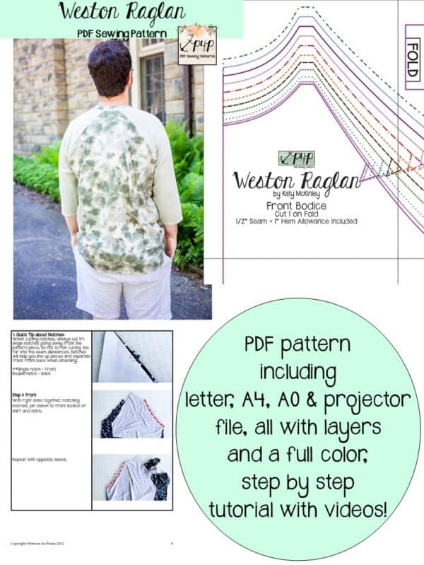 The Weston Raglan is a traditional, raglan t-shirt with ease throughout the bodice and sleeves. There are multiple sleeve lengths included (short, 3/4, long sleeve hemmed, and long sleeve cuffed) and is a beginner friendly sew. They’re fast, provide for fun pattern and color mixing options without any effort, and they make such a great casual tee. Make a casual tee in a tri-blend jersey, a great sports tee with your teams favorite colors, or a perfect sweater for cooler months using a sweater knit or brushed fabrics! The Weston Raglan also includes a full belly adjustment on the plus sizes to help the front hem lie straight when worn- so less time adjusting and more time sewing for you!