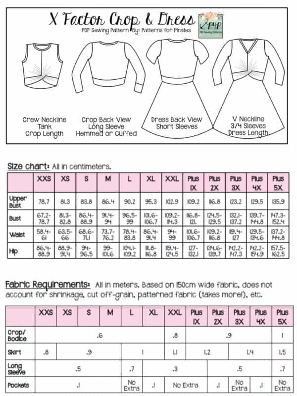 Sizes included: XXS, XS, S, M, L, XL, XXL, Plus 1X, Plus 2X, Plus 3X, Plus 4X, and Plus 5X (sizing/measurement chart on last picture). Both imperial and metric measurements included. You will receive the easy to print and match color coded pattern pieces on NO TRIM PAGES and have LAYERS so you can print only the size you need. In US letter, A4, A0 paper size, and Projector file formats, a cutting guide for rectangle pieces and rectangle pattern pieces included (so you can pick your preference to print a piece or not) and a full color and detailed picture step-by-step tutorial and guide to making the garment.